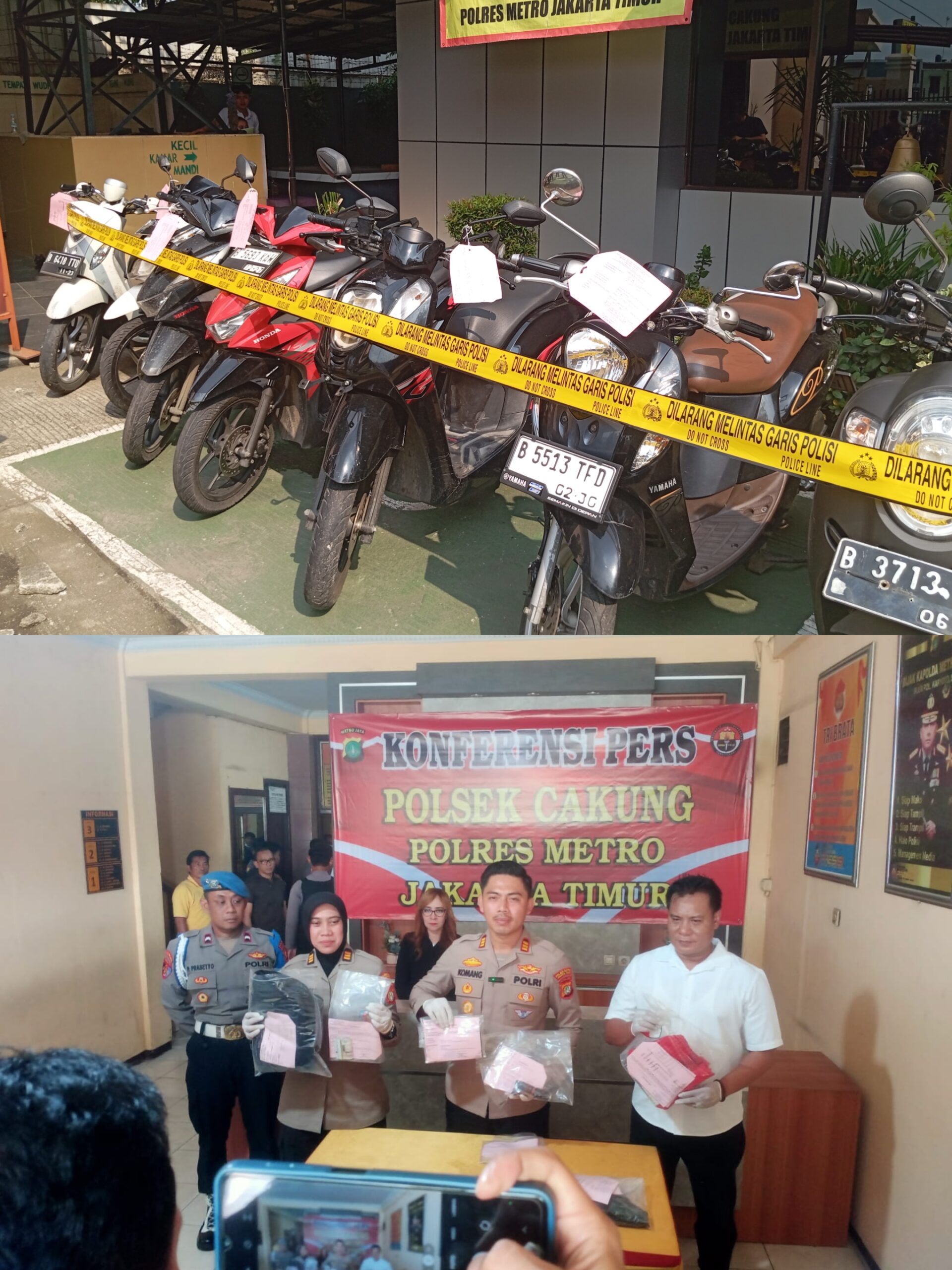 Jakarta nkrinews45.com – Saat ini kejahatan pencucian kendaraan bermotor di wilayah Jakarta cukup tinggi, untuk itu jajaran Kepolisian Polres Metro Jakarta Timur terus bergerak cepat, dan dalam waktu satu bulan, Unit Reskrim Polsek Cakung berhasil menangkap 11 orang pelaku Ranmor di beberapa titik di wilayah Kecamatan Cakung, hal tersebut diungkapkan Kapolsek Cakung, AKP Komang Karisma S.I.K didampingi Kasie Humas Polres Metro Jakarta Timur, AKP Nurul dan Kanit Reskrim Polsek Cakung saat jumpa Pers di Mapolsek Cakung Jakarta Timur, Senin 19 Mei 2025.
