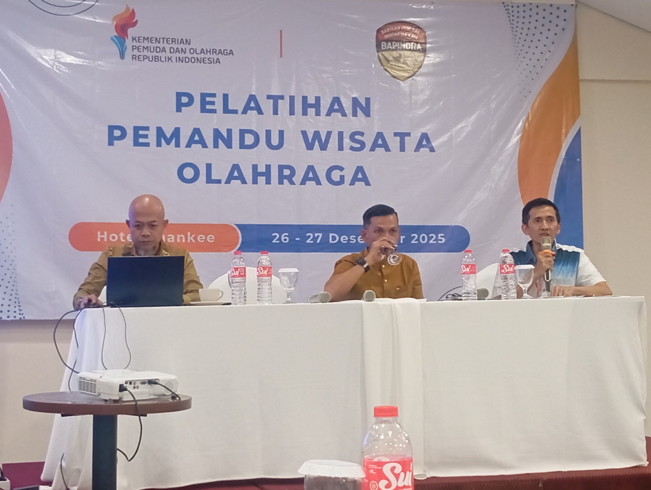 nkrinews45.com Jakarta — Badan Pengembangan Industri dan Riset Olahraga (BAPINDRA) bekerja sama dengan Kementerian Pemuda dan Olahraga (Kemenpora) RI menggelar Pelatihan Pemandu Wisata Olahraga selama dua hari, 26–27 Desember 2025, bertempat di Hotel Shankee, Kuningan, Jakarta. Kegiatan ini bertujuan mencetak pemandu wisata olahraga yang profesional, kompeten, dan berwawasan nasional guna mendukung pengembangan industri olahraga serta ekonomi kreatif.