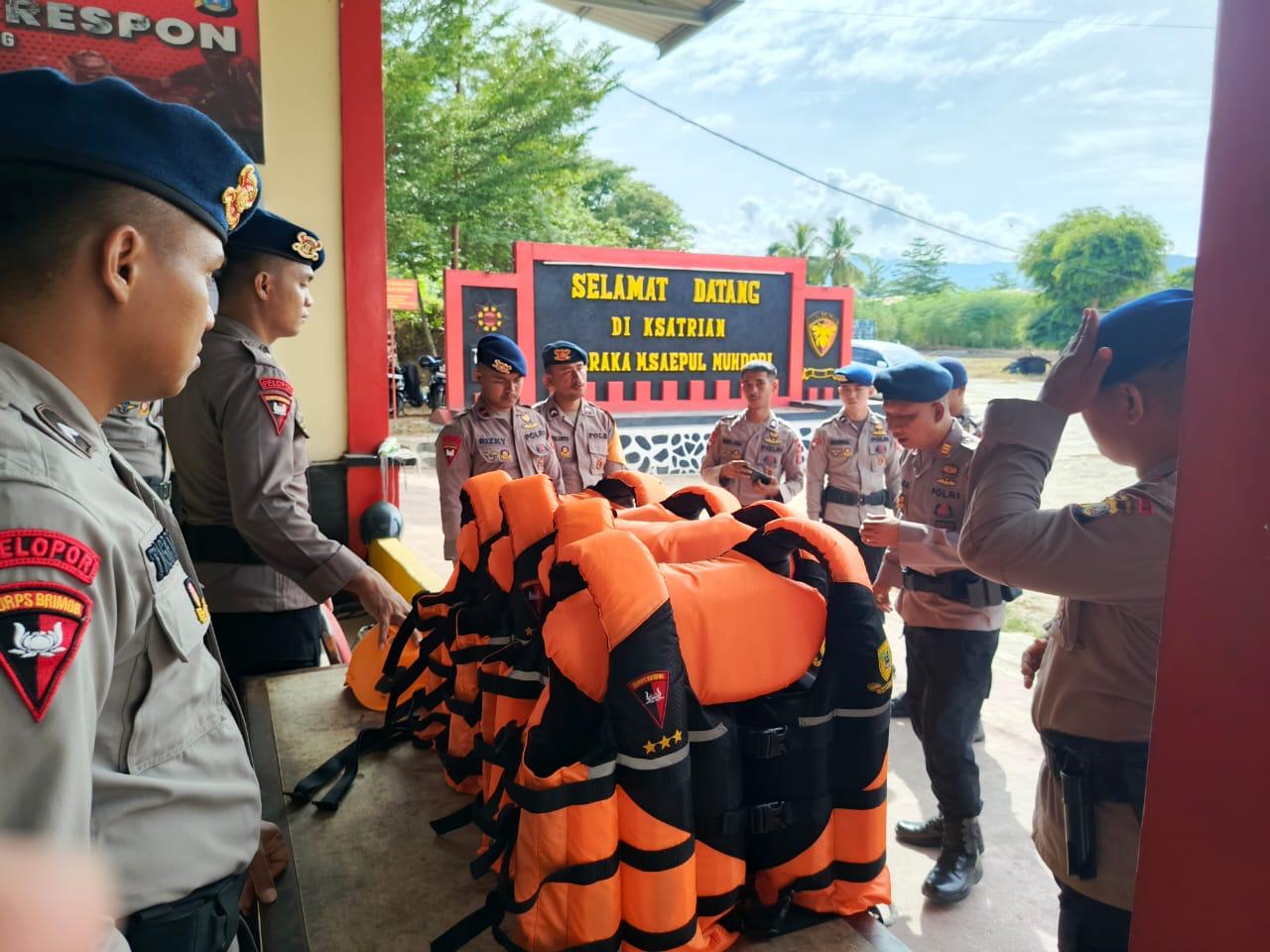 Kegiatan ini dipimpin langsung oleh Wadanyon A Pelopor Satbrimob Polda Sulteng, AKP Cahyo Suryanto, yang turun memastikan seluruh peralatan SAR berada dalam kondisi siap operasional. Pemeriksaan mencakup perlengkapan SAR darat dan air, mulai dari peralatan evakuasi, pertolongan pertama, perahu karet, hingga alat komunikasi pendukung operasi.