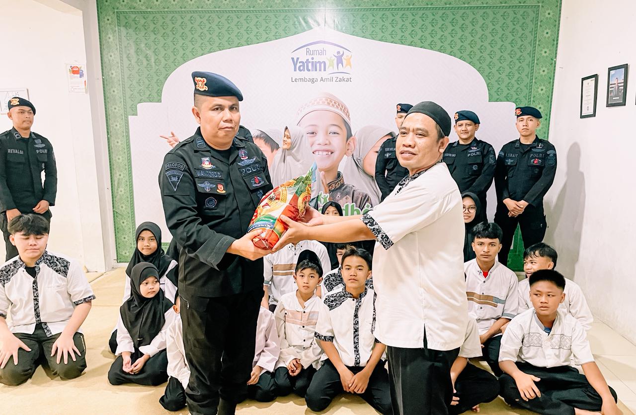 Batalyon A Pelopor Satuan Brimob Polda Metro melaksanakan agenda Jum at peduli yaitu kegiatan Bakti Sosial, dengan memberikan sembako ke Rumah Yatim.