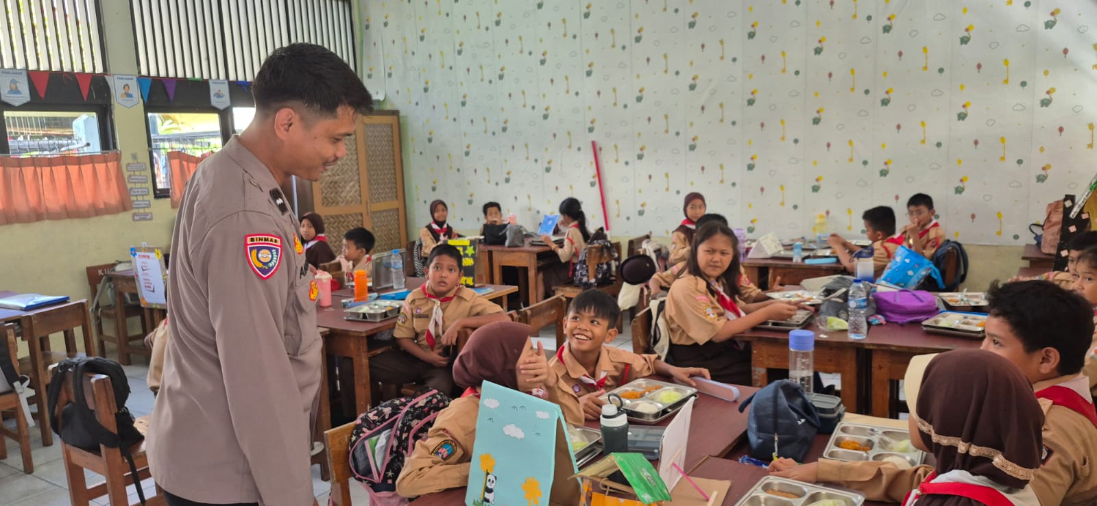> “Kami ingin memastikan kegiatan ini berjalan tertib, aman, dan makanan yang diberikan benar-benar memenuhi standar gizi yang baik bagi anak-anak,” ujar Aipda Angga.