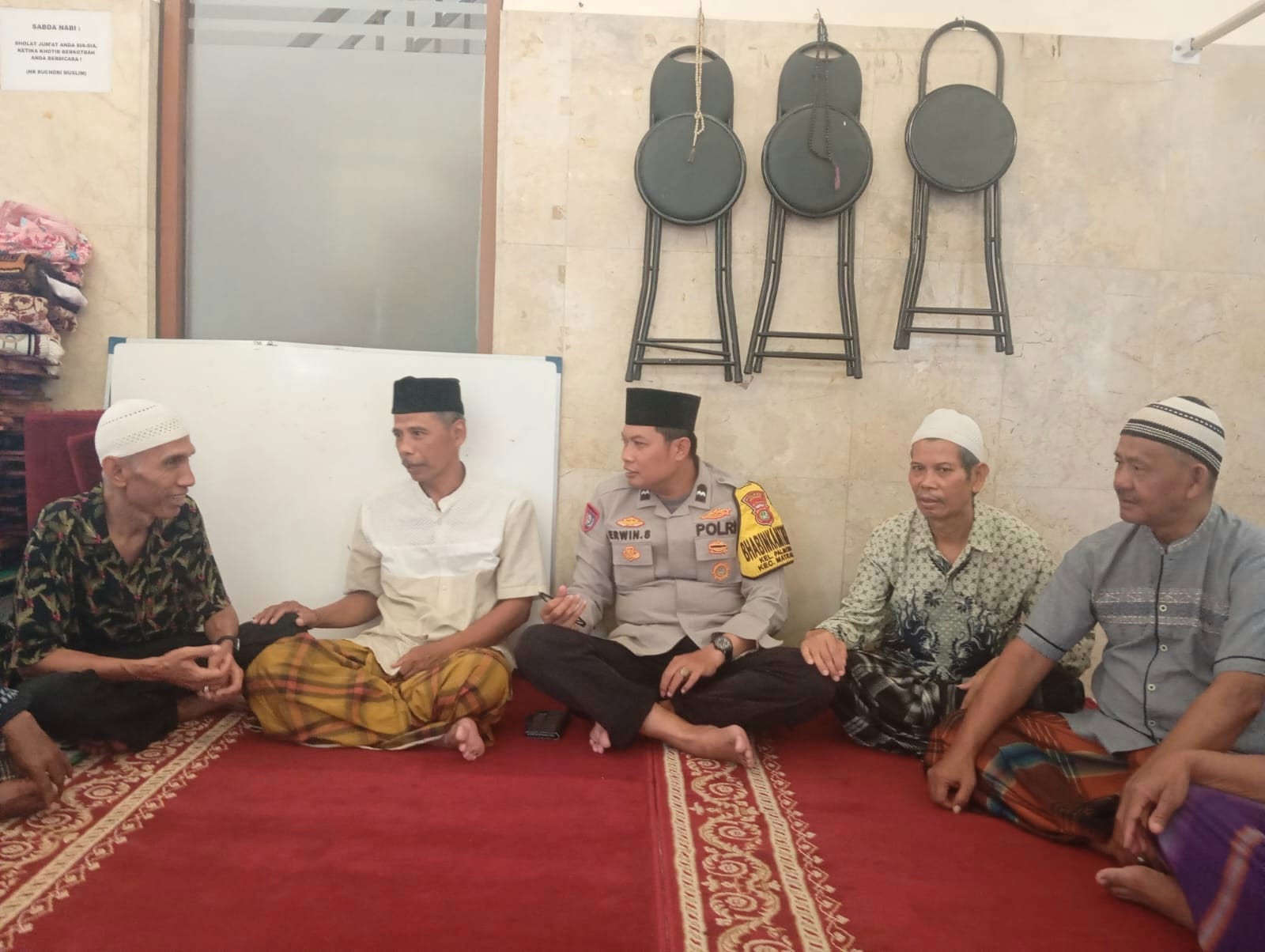 Jakarta – Bhabinkamtibmas Kelurahan Palmeriam AIPDA Erwin, melaksanakan kegiatan Sholat Dzuhur berjamaah di Masjid Jami As Sholihin RW 06 Kelurahan Palmeriam Kecamatan Matraman Jakarta Timur, pada Senin (17/2/25).