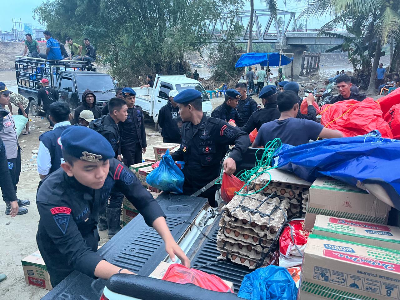 Meski medan cukup berbahaya dan arus sungai masih deras, personel Brimob bekerja sigap memastikan seluruh bantuan dapat diseberangkan dengan aman menuju titik distribusi. Upaya ini menjadi bukti nyata kehadiran Brimob sebagai garda terdepan dalam membantu masyarakat dan mendukung berbagai unsur yang turut menyalurkan bantuan kemanusiaan.