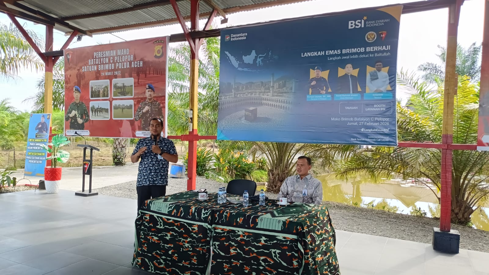 Aceh Barat – Rabu, 22 April 2026 pukul 09.30 WIB, personel Kompi 2 Batalyon C Pelopor Satuan Brimob Polda Aceh melaksanakan kegiatan sosialisasi Tabungan Haji dan Emas dari BSI Cabang Meulaboh di Mako Batalyon C Pelopor.