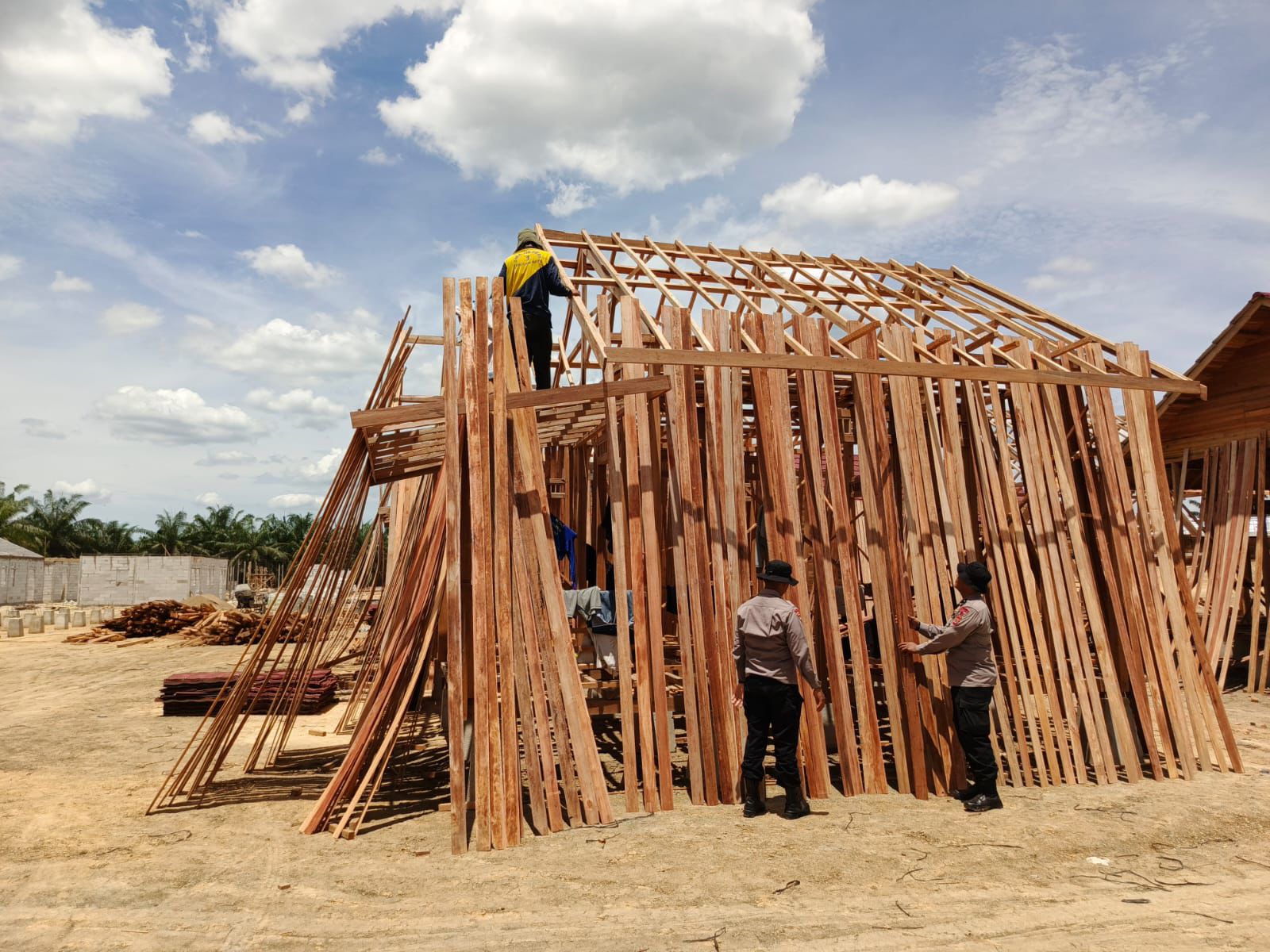 Kegiatan pengamanan dilakukan secara optimal guna memastikan proses pembangunan berjalan aman, lancar, dan tepat sasaran. Personel Brimob juga turut berinteraksi dengan para pekerja dan masyarakat sekitar, memberikan rasa aman serta dukungan moril di tengah proses pembangunan hunian yang diharapkan menjadi awal kehidupan baru bagi para korban bencana.