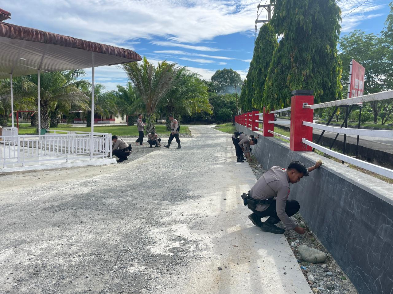 Dengan penuh semangat dan rasa tanggung jawab, personel Brimob bergotong royong membersihkan area halaman, merapikan lingkungan, serta memastikan kenyamanan bagi para jamaah. Aksi ini tidak hanya mencerminkan kepedulian terhadap kebersihan, tetapi juga menjadi wujud nyata kehadiran Polri di tengah masyarakat sebagai pelindung, pengayom, dan pelayan masyarakat.