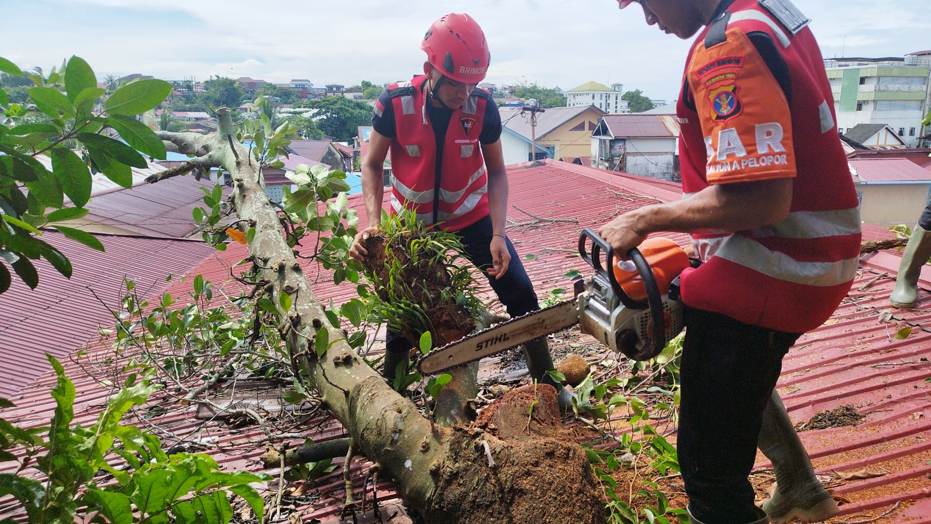 Setelah menerima laporan, personel Batalyon A Pelopor Satbrimob Polda Kaltim bersama warga segera bergerak ke lokasi untuk mengevakuasi pohon tersebut. Tidak ada korban jiwa dalam peristiwa ini, namun atap rumah rusak akibat tertimpa pohon.