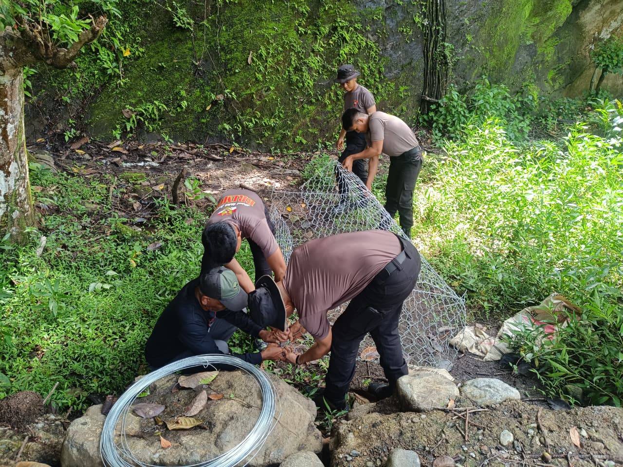 Berdasarkan pantauan di lokasi, para personel Brimob tampak bahu-membahu bersama warga setempat. Fokus utama pada hari pertama ini adalah pembangunan struktur penguat menggunakan teknik Gabion (beronjong kawat)