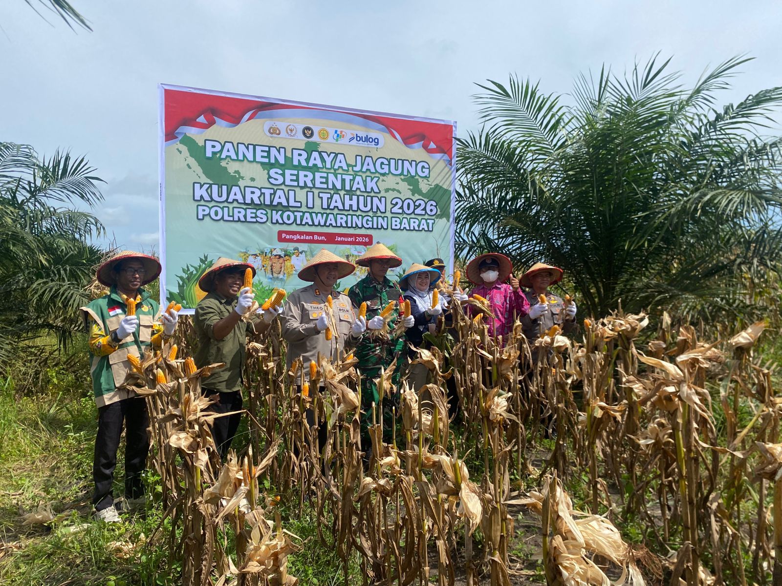 Kotawaringin Barat – Satuan Brimob Polda Kalimantan Tengah turut mendukung program ketahanan pangan nasional dengan menghadiri kegiatan Panen Raya Jagung Kuartal I Tahun 2026 yang digelar di Desa Pangkalan Dewa, Kecamatan Pangkalan Banteng, Kabupaten Kotawaringin Barat, pada Kamis (8/1/2026).