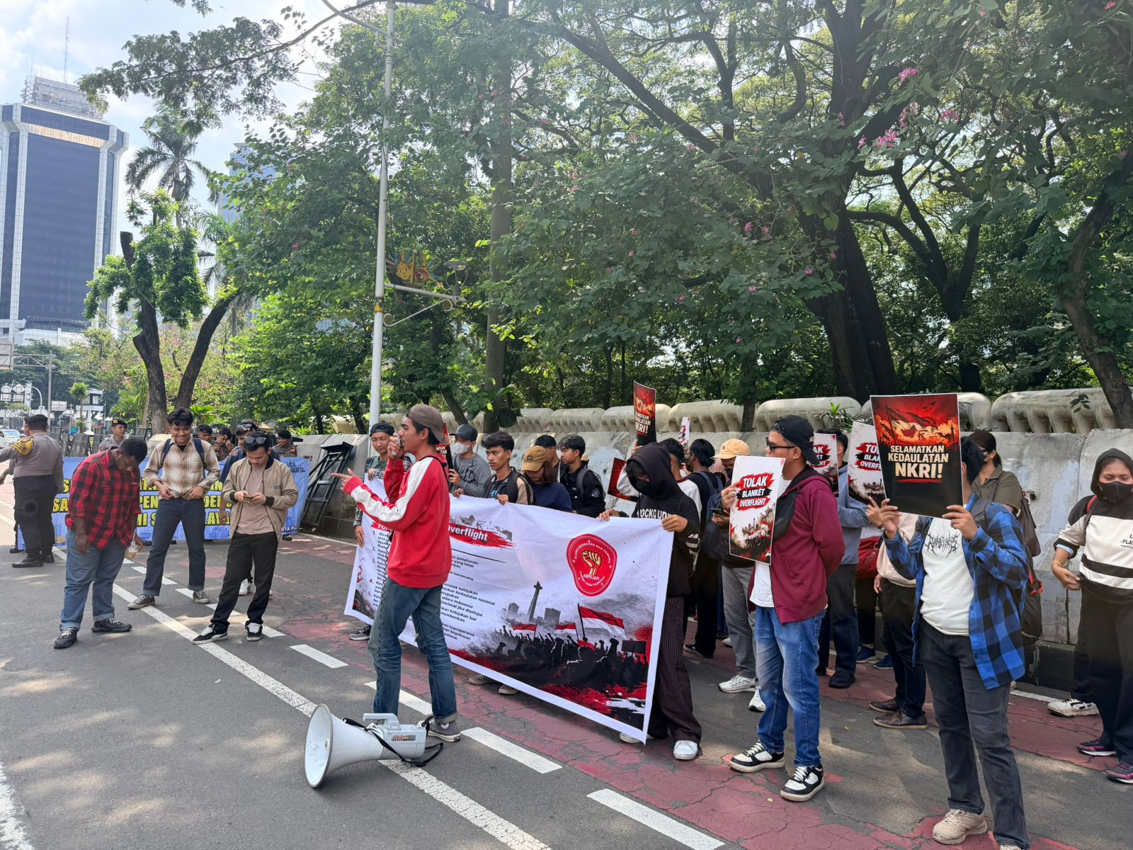 Dalam aksinya, massa menyuarakan penolakan terhadap isu perjanjian overflight yang melibatkan Amerika Serikat. Mereka juga mendesak pemerintah agar mengedepankan prinsip kedaulatan nasional, transparansi, serta kebijakan luar negeri yang mandiri dan tidak berpihak.