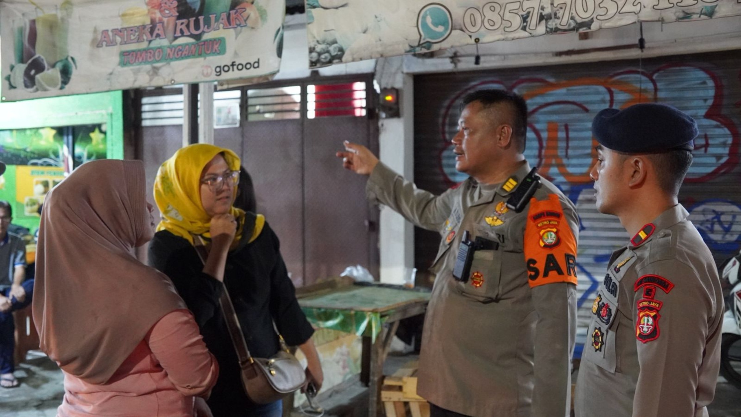 Setelah menerima laporan dari warga pada pukul 17.46 WIB, Team SAR Batalyon C Pelopor Brimob Polda Metro Jaya segera bergerak menuju lokasi. Di titik pertama, personel melakukan pengecekan awal dan memastikan area aman sebelum memulai pemotongan menggunakan chainsaw, tali, dan perlengkapan keselamatan.