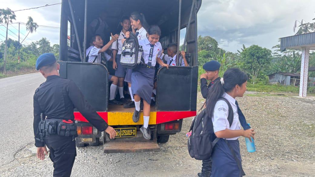 Melalui kegiatan ini, para personel membantu memastikan anak-anak sekolah dapat pulang dengan aman dan nyaman, mengingat sebagian besar dari mereka harus menempuh perjalanan cukup jauh dan melewati jalur perbukitan yang minim sarana transportasi umum.