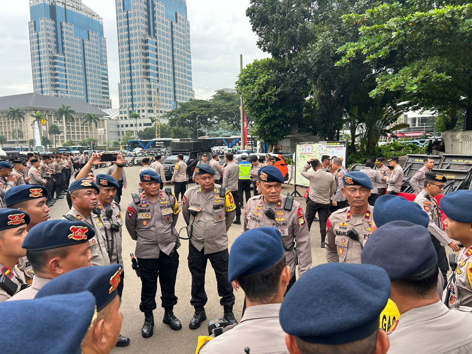Pelayanan tersebut dilakukan dengan menempatkan personel secara terukur pada sejumlah titik strategis. Personel dari Batalyon C Pelopor hadir untuk memastikan kegiatan berlangsung aman, tertib, dan kondusif, sekaligus menjamin hak masyarakat dalam menyampaikan aspirasi secara damai.