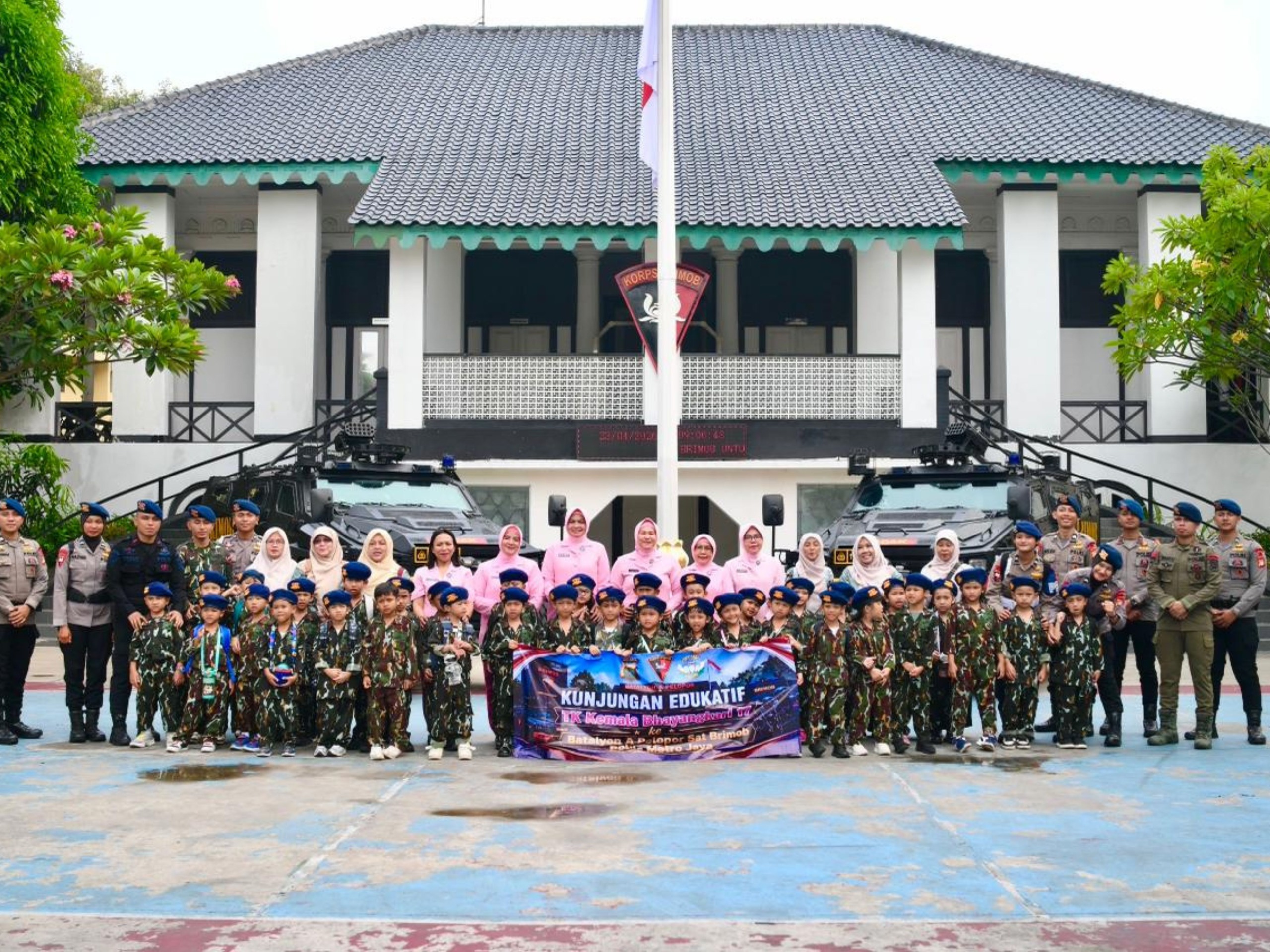 Jakarta – Batalyon A Pelopor Brimob Polda Metro Jaya menerima kunjungan edukasi dari siswa-siswi TK Kemala Bhayangkari 17 di Mako Batalyon A Pelopor pada Kamis (23/4/2026). Kegiatan ini bertujuan mengenalkan tugas serta lingkungan kepolisian kepada anak sejak dini.
