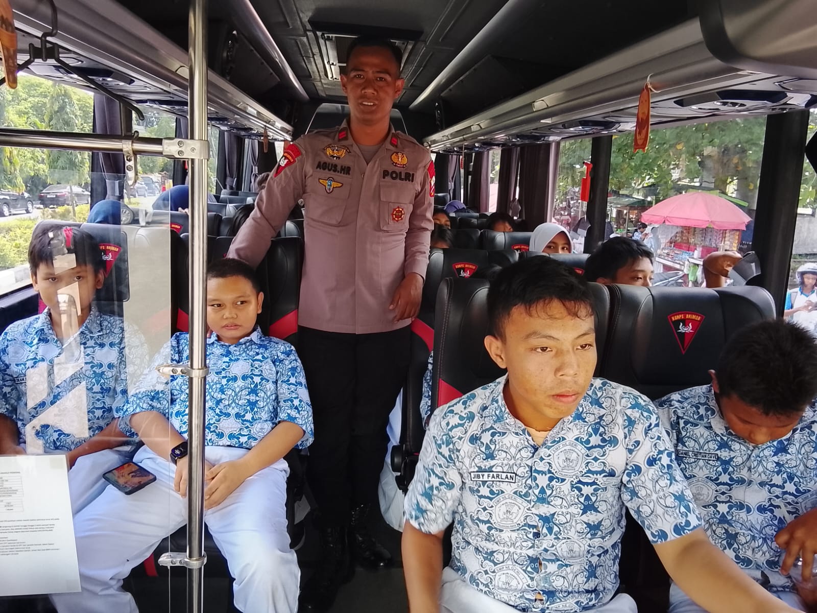 Para personel Brimob juga memastikan seluruh proses penjemputan berjalan tertib serta memberikan pendampingan penuh selama perjalanan. Senyum para siswa saat menaiki bus menjadi gambaran nyata bahwa program ini memberikan dampak positif, tidak hanya sebagai sarana transportasi, tetapi juga bentuk kepedulian nyata dari Brimob kepada generasi muda.