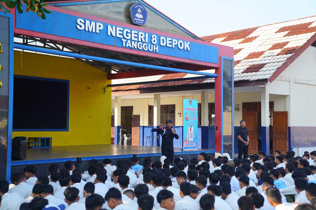 nkrinews45.com Depok – Dalam rangka mencegah penyalahgunaan Narkotika, Psikotropika dan Bahan Adiktif berbahaya lainnya (Narkoba), Bidang Profesi dan Pengamanan (Bid Propam) Korbrimob Polri melaksanakan sosialisasi kepada siswa-siswi SMP Negeri 08 Depok.