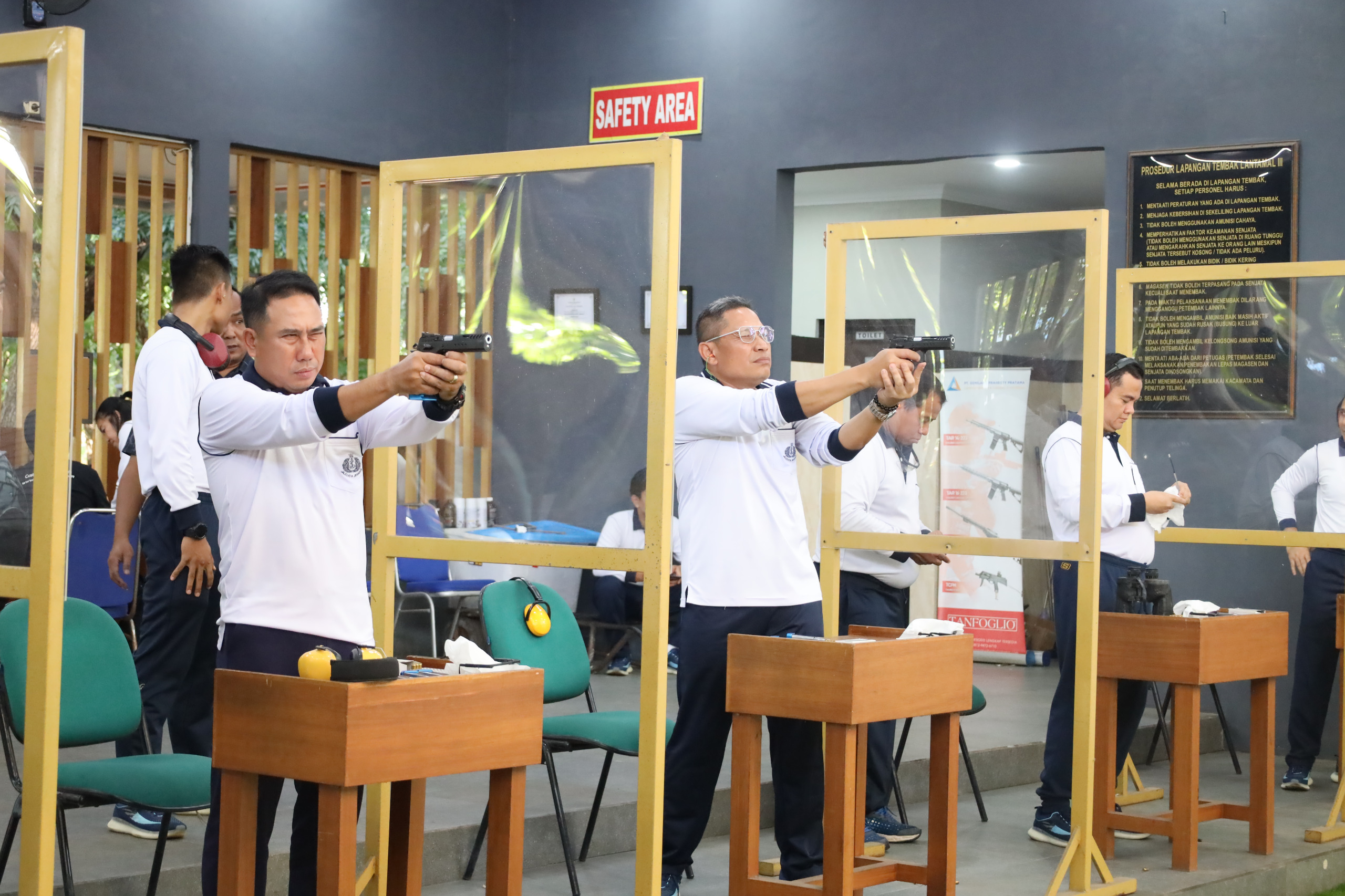 Komandan Lantamal (Danlantamal) III Jakarta, Laksamana Pertama TNI Uki Prasetia, S.T. M.M. didampingi oleh Asisten dan Kasatker Lantamal III melaksanakan kegiatan latihan menembak pistol di lapangan tembak Harsono Mako Lantamal III Jakarta Jl. Gunung Sahari No. 2 Ancol, Jakarta Utara, Selasa (27/5).