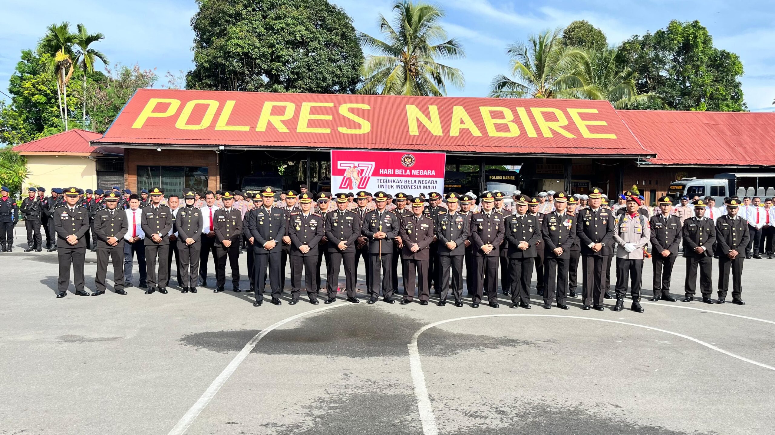 Dansat Brimob Polda Papua Tengah KBP Ahmad Nurman Ismail, S.I.K. dan personil menghadiri Upacara Hari Bela Negara yang diselenggarakan di Lapangan Apel Mako Polres Nabire. Acara yang diikuti oleh Personil Satbrimobda Papua Tengah, Personil Polda Papua Tengah Dan Personil Polres Nabire. momen penting untuk memperkuat semangat cinta tanah air dan komitmen menjaga keutuhan NKRI.