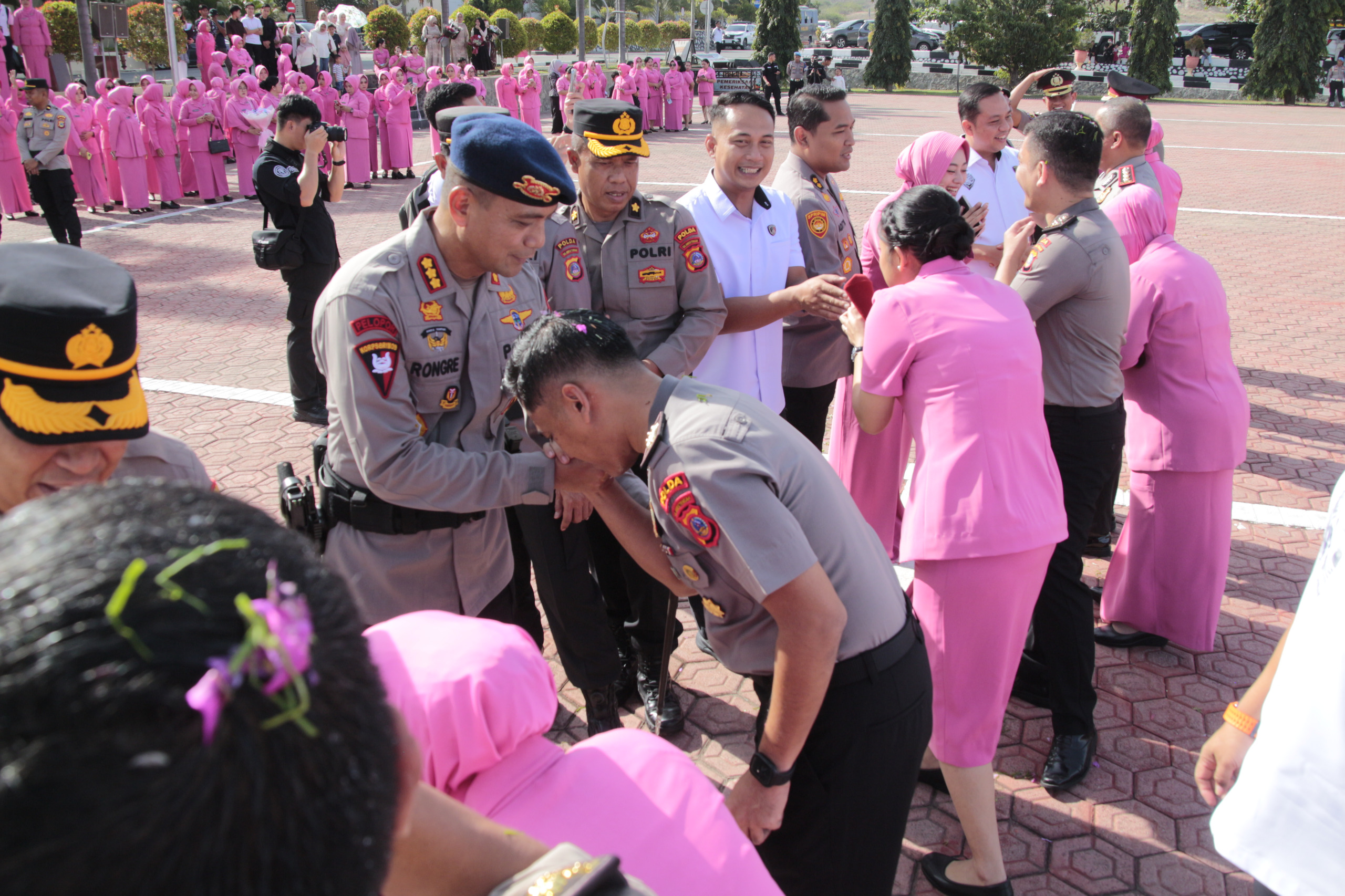 Tradisi Penyiraman dan Sujud Syukur Menambah kesakralan momentum tersebut, rangkaian acara ditutup dengan prosesi sujud syukur sebagai simbol kerendahan hati kepada Sang Pencipta. Tak ketinggalan, tradisi ikonik penyiraman air menggunakan unit Water Cannon dilakukan untuk membasuh semangat baru para personel yang naik pangkat.