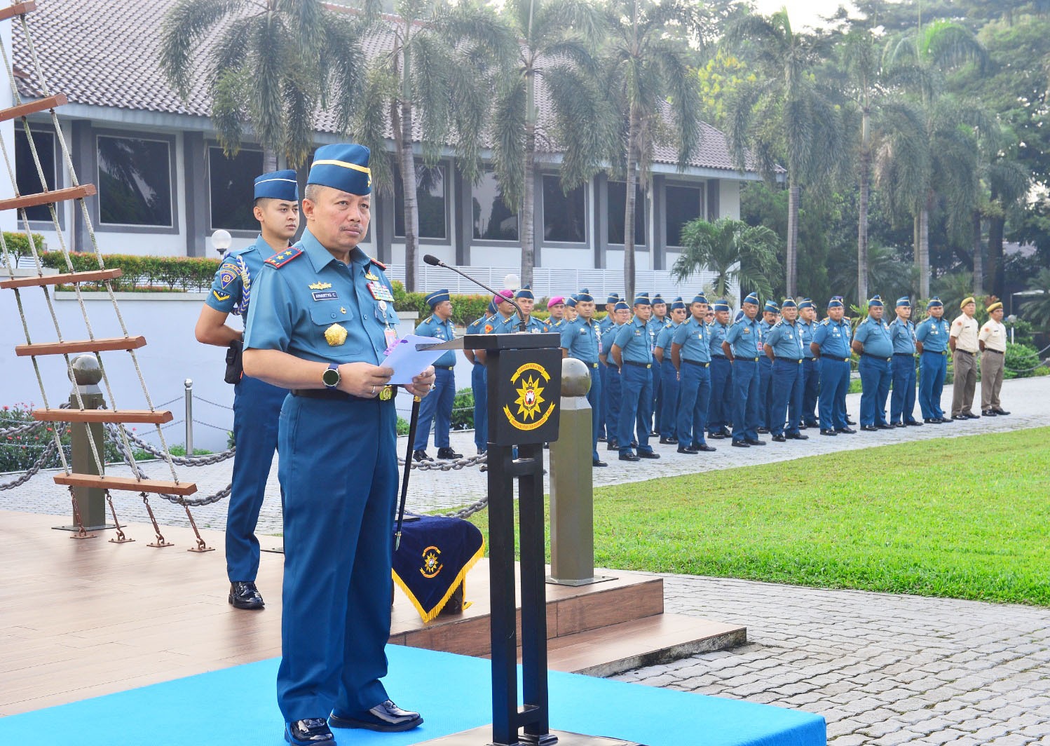 Komandan Sekolah Staf dan Komando Angkatan Laut (Danseskoal) Laksamana Muda TNI Ariantyo Condrowibowo didampingi Ketua Cabang Berdiri Sendiri Jalasenastri Seskoal Ny. Dian Ariantyo Condrowibowo hadiri halal bihalal bersama civitas akademika Seskoal, bertempat di lapangan Laut Jawa Seskoal, Cipulir, Kebayoran Lama, Jakarta Selatan, Senin (30/03/2026).
