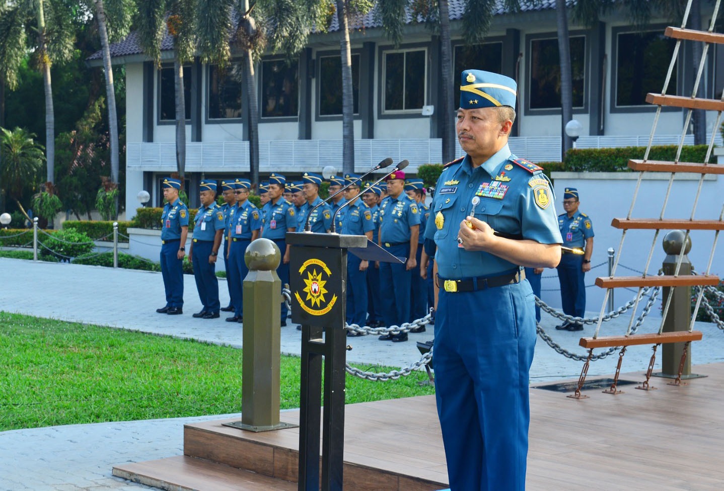 Komandan Sekolah Staf dan Komando Angkatan Laut (Danseskoal) Laksamana Muda TNI Ariantyo Condrowibowo memimpin langsung apel khusus Perwira Siswa Pendidikan Reguler (Pasis Dikreg) Seskoal angkatan ke-64 TA 2025 yang berlangsung di depan gedung R.E. Martadinata Seskoal, Cipulir, Kebayoran Lama, Jakarta Selatan, Senin (8/9/2025).