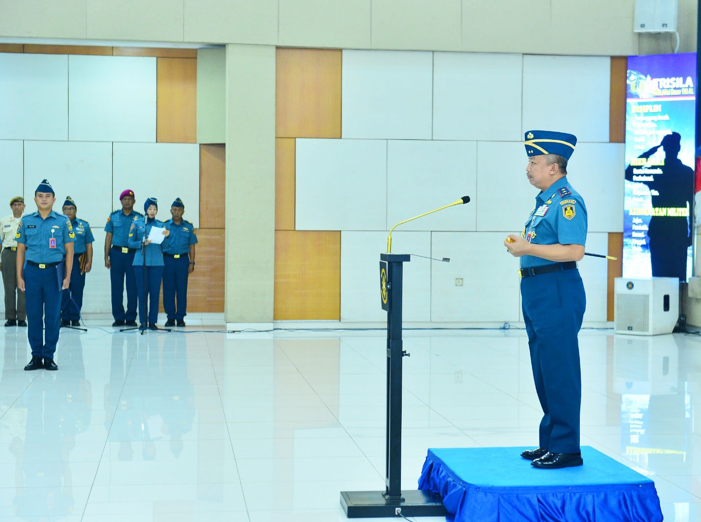 Komandan Sekolah Staf dan Komando Angkatan Laut (Daneskoal) Laksamana Muda TNI Ariantyo Condrowibowo selaku Inspektur Upacara (Irup) memimpin upacara peringatan Hari Sumpah Pemuda ke-97 tahun 2025 yang diikuti Perwira, Bintara, Tamtama, dan Pegawai Negeri Sipil (PNS), serta Perwira Siswa Pendidikan Reguler (Pasis Dikreg) Seskoal angkatan ke-64, bertempat di auditorium Jos Soedarso, Seskoal, Cipulir, Kebayoran Selatan, Jakarta Selatan, Selasa (28/10/2025).