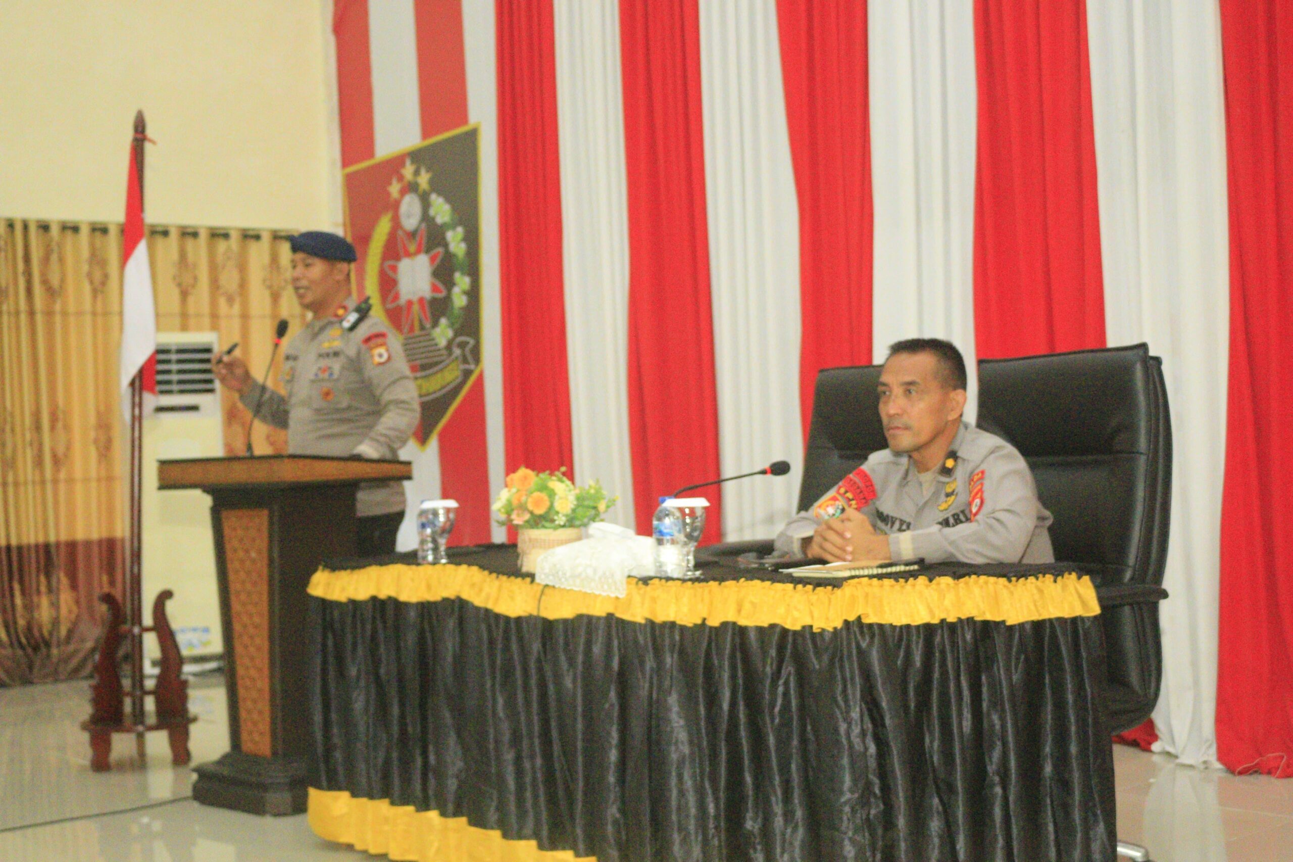 Danyon A Pelopor Satuan Brimob Polda Maluku mewakili Dansat Brimob Polda Maluku untuk memberikan pembekalan kepada para Siswa pendidikan pembentukan Bintara Polri T.A.2025 SPN Polda Maluku.