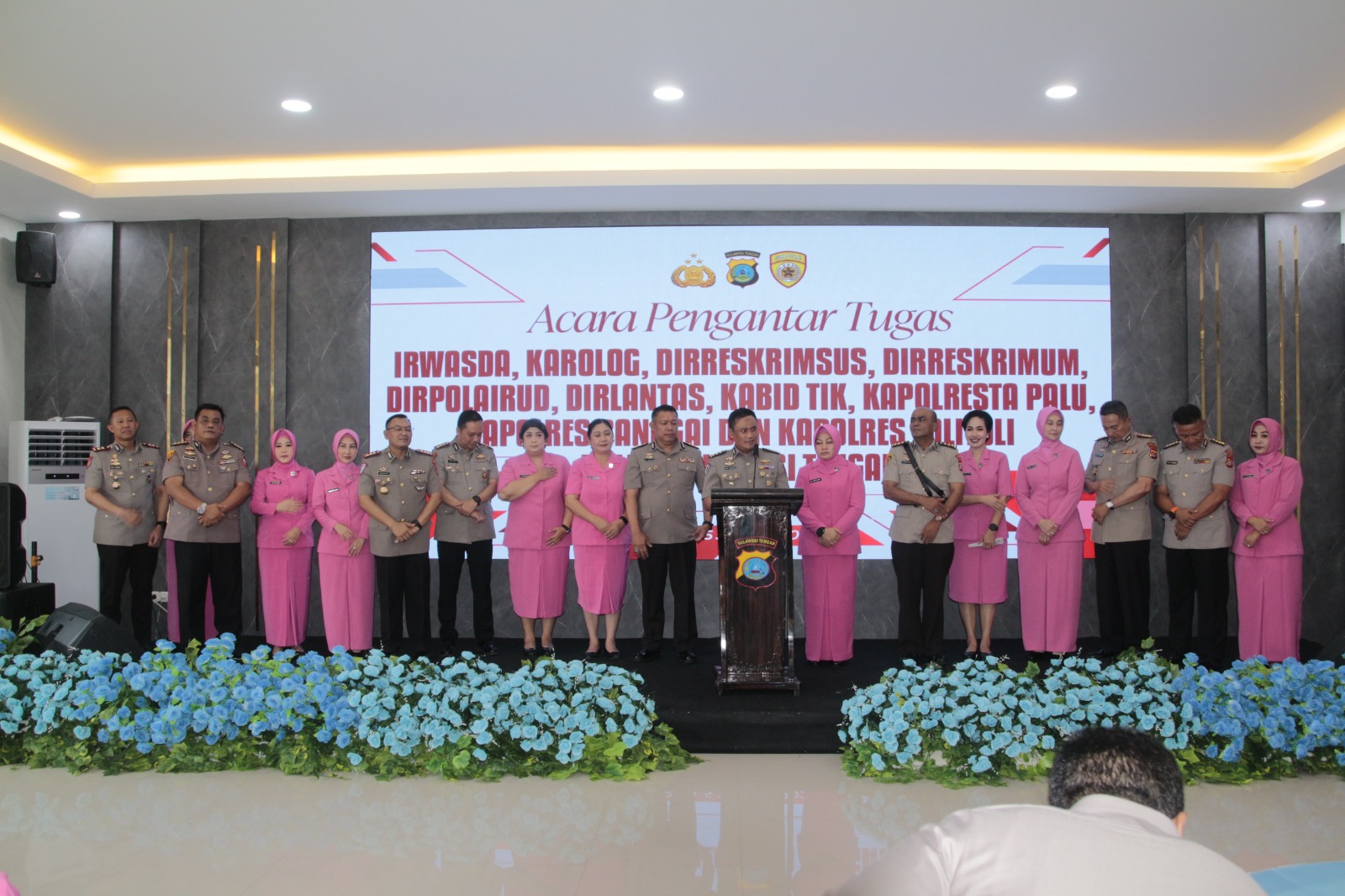 Aula Satya Haprabu Mako Satbrimob Polda Sulawesi Tengah menjadi saksi bisu momen penuh khidmat dalam acara pengantar tugas sejumlah Pejabat Utama (PJU) serta Kapolres jajaran Polda Sulteng. Di markas besar pasukan elit tersebut, suasana kekeluargaan menyelimuti pelepasan para perwira terbaik yang akan mengemban amanah baru, mulai dari posisi Irwasda, Karolog, Dirreskrimsus, Dirpolairud, Dirlantas, hingga Kabid TIK. Penghormatan juga diberikan kepada Kapolresta Palu, Kapolres Banggai, dan Kapolres Toli-Toli atas dedikasi luar biasa mereka selama bertugas di wilayah hukum masing-masing.