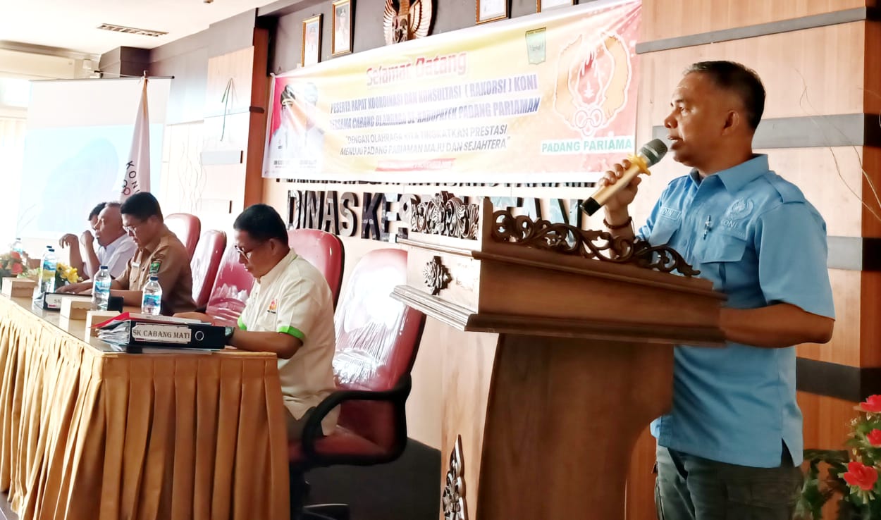 Padang Pariaman | Ketua sementara Komite Olahraga Nasional Indonesia Kabupaten Padang Pariaman (KONI Padang Pariaman), Zahirman, S.Sos., menegaskan bahwa momentum rakorsI (rapat koordinasi dan konsultasi) yang digelar pada 3 November 2025 di Aula Dinas Kesehatan Padang Pariaman adalah titik awal terwujudnya kepemimpinan baru yang visioner untuk olahraga daerah.