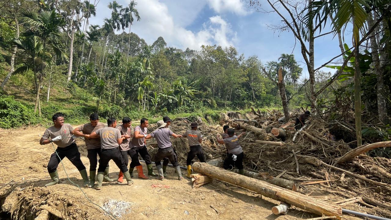 Pembangunan jembatan darurat tersebut dilakukan sebagai langkah cepat untuk menghubungkan kembali jalur transportasi warga yang terdampak bencana, sehingga aktivitas masyarakat dapat kembali berjalan normal. Personel Brimob bersama unsur kepolisian dan warga bahu membahu dalam proses pembangunan jembatan sebagai wujud sinergi dan kepedulian terhadap kondisi masyarakat pascabencana.