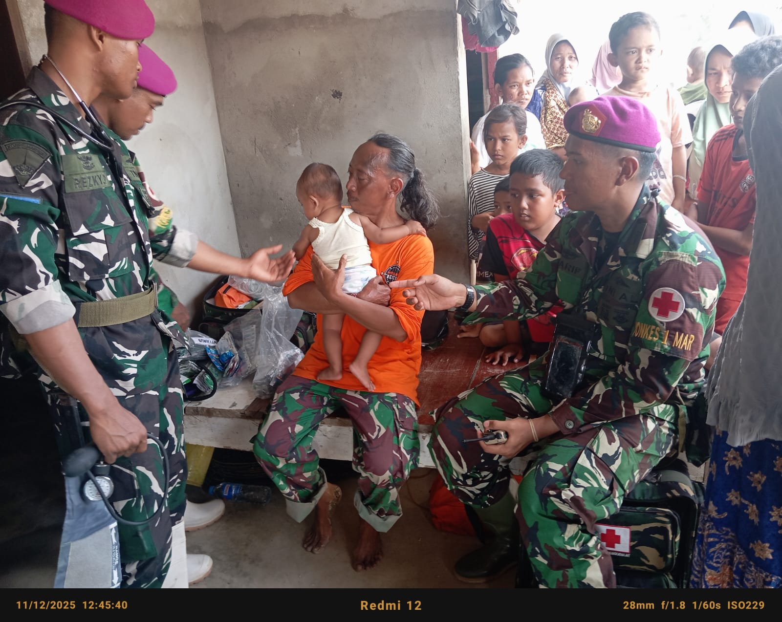Di sela genangan air dan lumpur yang belum surut, para prajurit menyusuri lorong-lorong kecil untuk memastikan tidak ada warga yang terlewatkan. Para dokter dan tenaga kesehatan Korps Marinir bekerja sigap memeriksa anak-anak, membantu lansia, hingga melakukan tindakan medis ringan yang dibutuhkan di lapangan secara langsung. Kehadiran Marinir disambut haru oleh warga Aceh Tamiang yang sudah menunggu.
