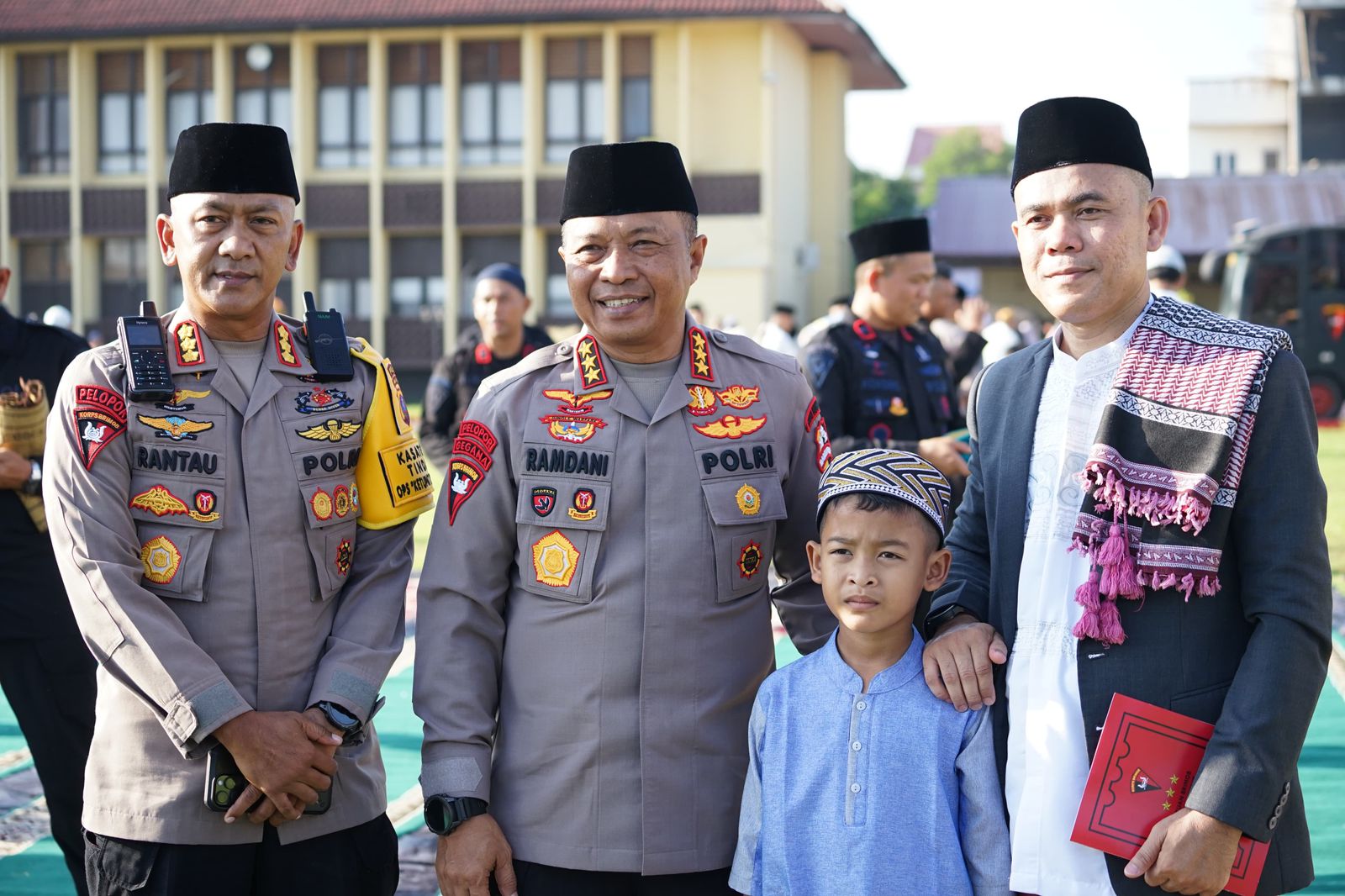 Kehadiran Dankorbrimob di tengah jamaah memberikan semangat tersendiri, menghadirkan rasa kebersamaan yang tulus di hari kemenangan.