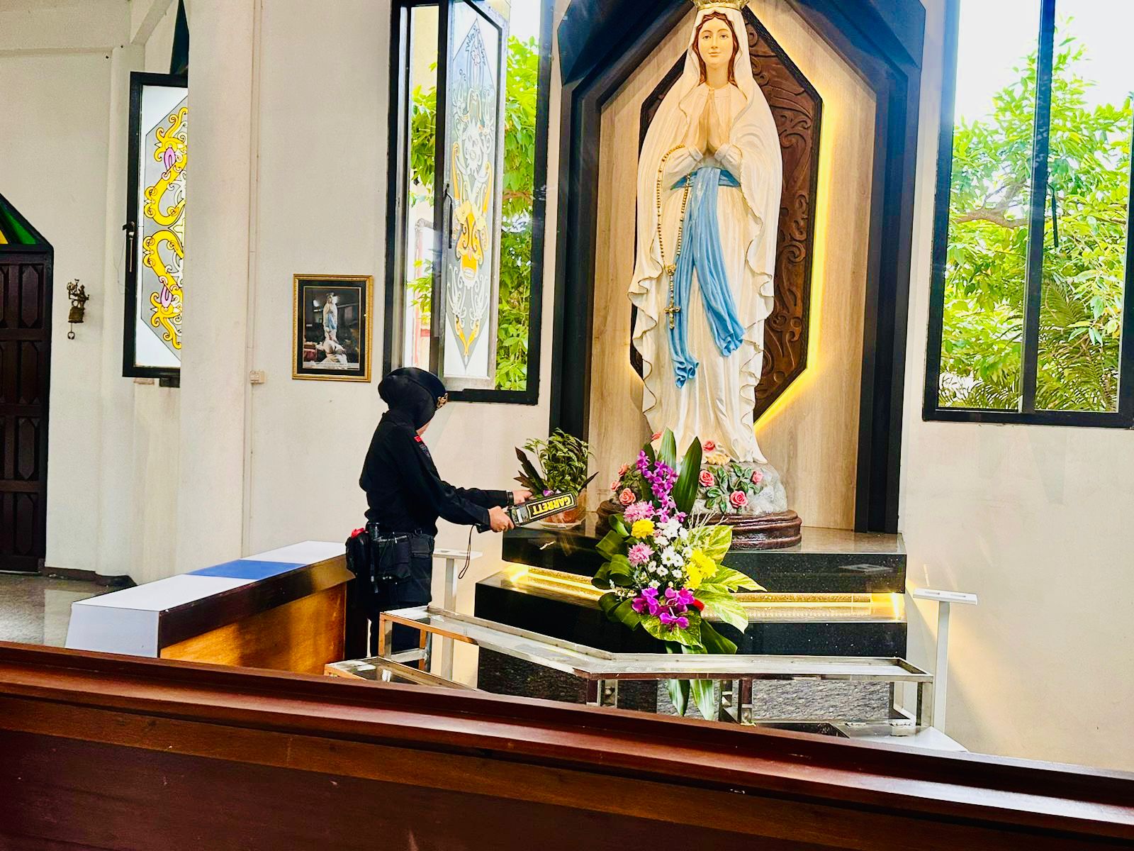 Kegiatan ini dilakukan sebagai langkah antisipatif guna menjamin keamanan dan kenyamanan umat Kristiani yang melaksanakan ibadah. Tim Gegana menyisir seluruh area gereja menggunakan peralatan khusus pendeteksi bahan peledak.