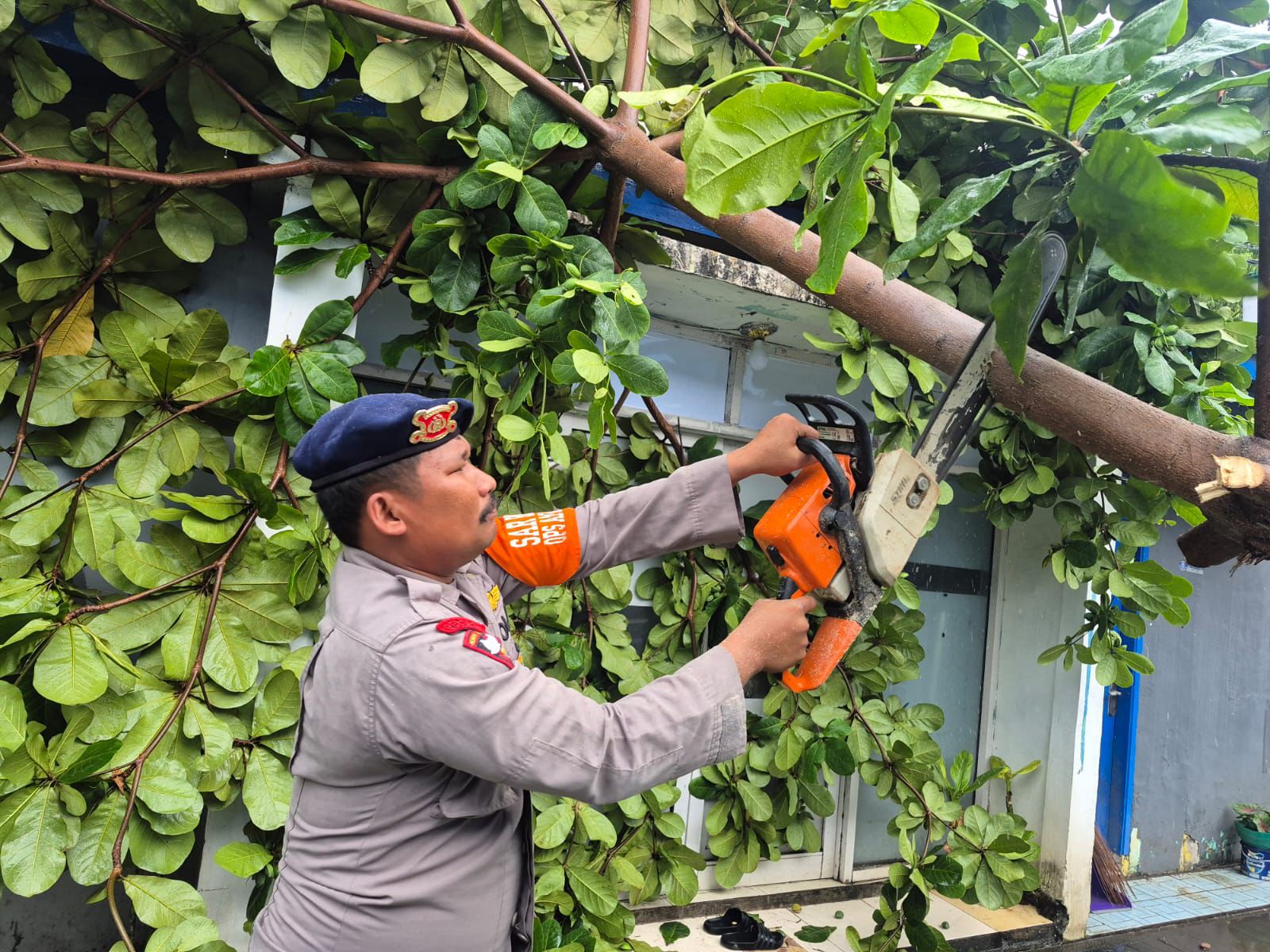 Gerak cepat Personel Batalyon A Pelopor Satbrimob Polda Sulsel kembali ditunjukkan melalui aksi tanggap darurat mereka dalam mengevakuasi dan membersihkan pohon tumbang yang terjadi di Perumahan Graha Modern Jaya, Jl. Sultan Alauddin, Kota Makassar. Kejadian pohon tumbang yang sempat menghalangi akses jalan dan membahayakan warga ini langsung direspons cepat oleh tim setelah menerima informasi dari masyarakat.