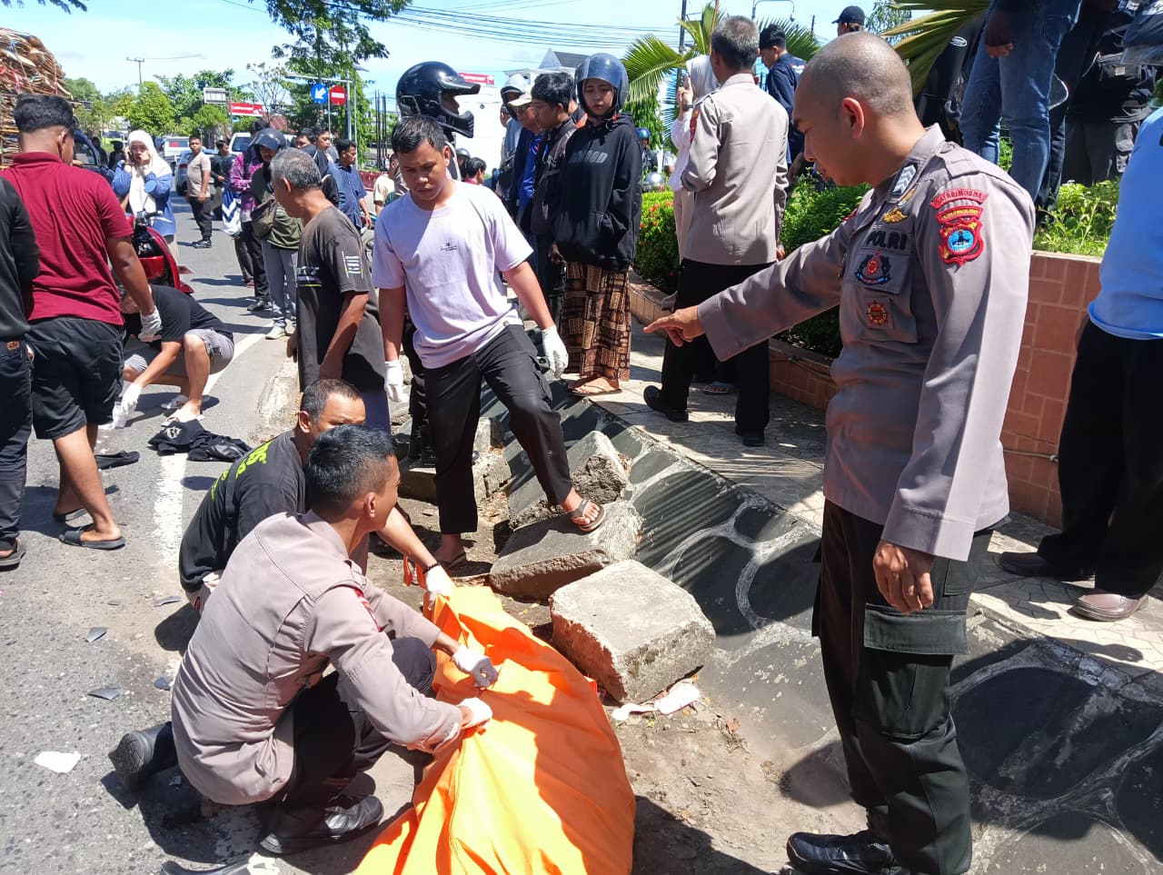 Gerak cepat personel piket Poliklinik Satbrimob Polda Kalimantan Selatan bersama personel Polres Banjarbaru dan masyarakat sekitar dalam menangani kecelakaan lalu lintas yang terjadi di Bundaran Palam, Kota Banjarbaru pada hari ini Rabu 8 April 2026.