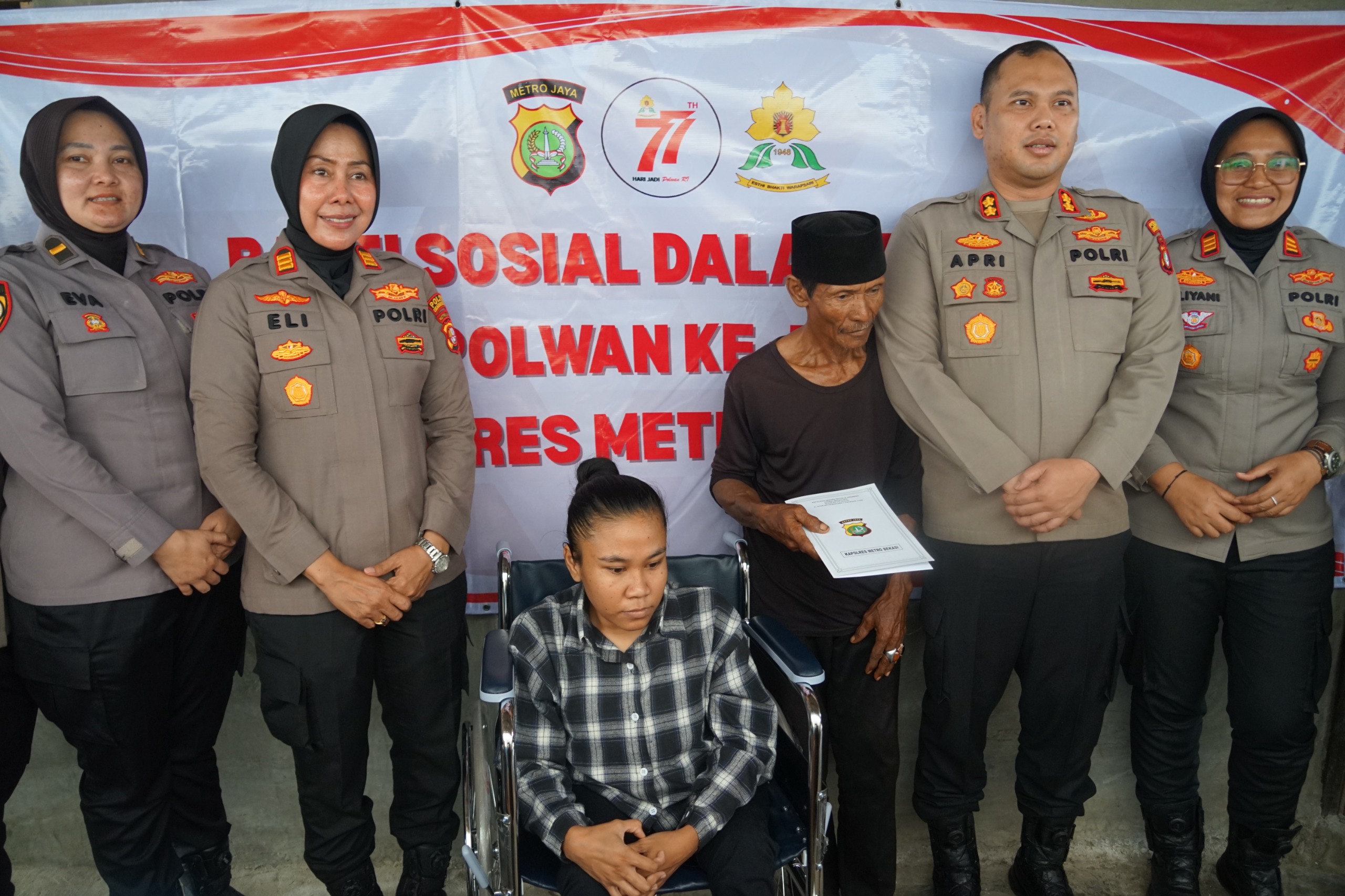 Wakapolres Metro Bekasi AKBP Apri Fajar Hermanto, S.I.K., memimpin langsung penyerahan bantuan kursi roda kepada seorang warga penyandang disabilitas bernama Rohati. Sejak duduk di bangku sekolah dasar, Rohati mengalami kelumpuhan pada bagian kaki sehingga membutuhkan alat bantu untuk menunjang aktivitas sehari-hari, kegiatan berlokasi.