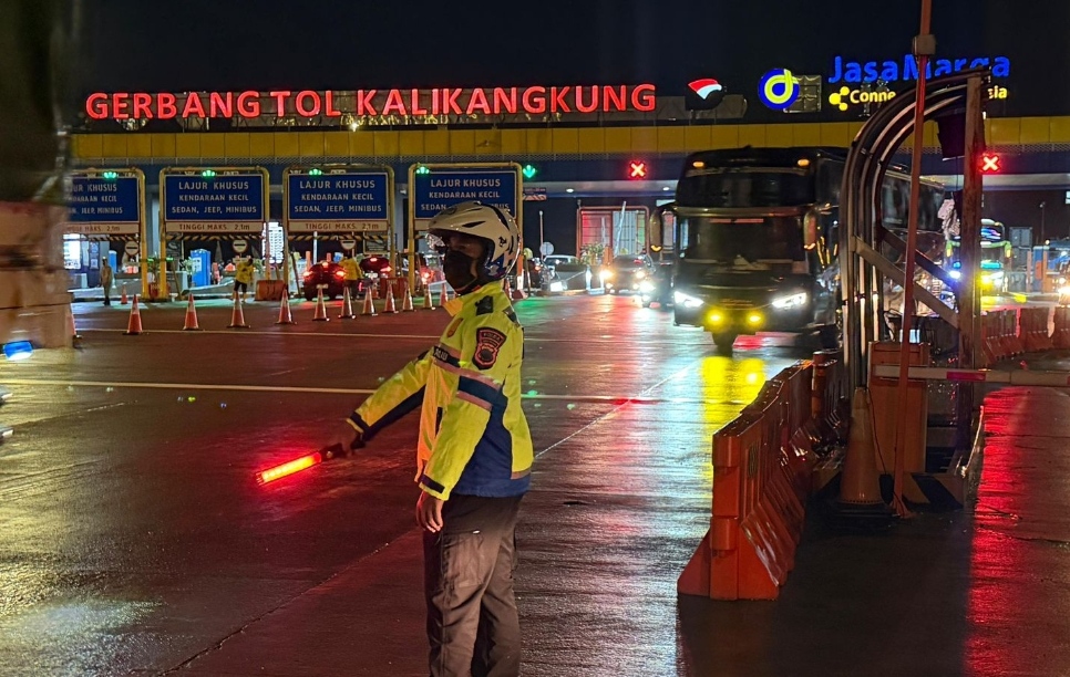 “Polda Jawa Tengah terus memonitor perkembangan arus lalu lintas di sejumlah titik pintu masuk utama, khususnya di Gerbang Tol Kalikangkung yang menjadi jalur utama kendaraan dari arah barat menuju wilayah Jawa Tengah. Kami juga menyiagakan personel di lapangan untuk memastikan arus lalu lintas tetap berjalan aman dan lancar,” ujar Kombes Pol. Artanto. Minggu (15/3)