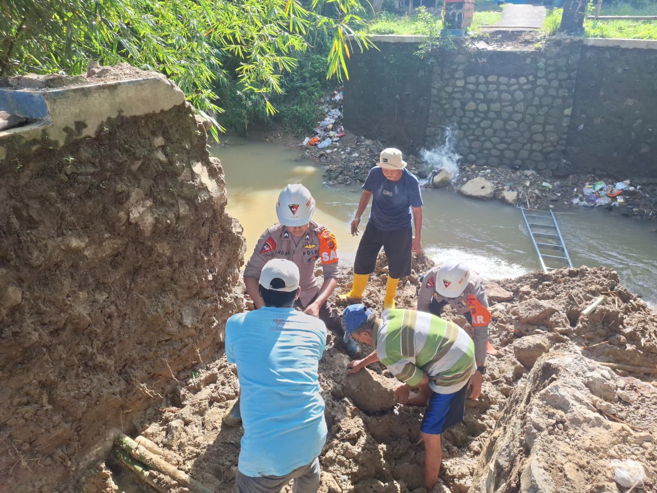 Pada kegiatan hari ini, personel Tim SAR Batalyon A Pelopor bersama warga setempat bergotong royong melaksanakan pembuatan pondasi jembatan. Pekerjaan pondasi menjadi tahap krusial sebagai dasar utama agar jembatan memiliki konstruksi yang kuat, aman, dan dapat digunakan dalam jangka panjang oleh masyarakat.