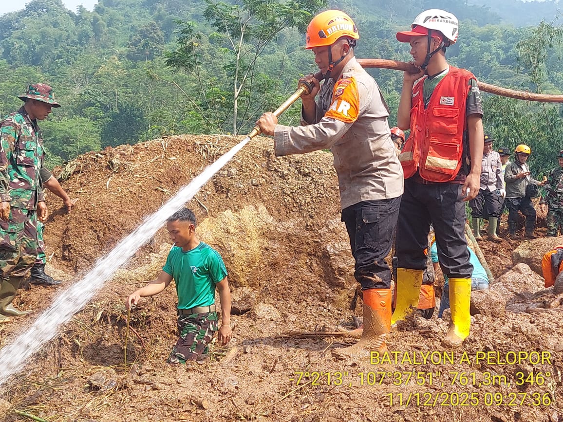 Memasuki hari keenam operasi pencarian dan evakuasi, Tim SAR Batalyon A Pelopor Satbrimob Polda Jabar yang dipimpin Ipda Dik Dik Sodikin kembali melanjutkan tugas kemanusiaan di lokasi bencana longsor Kp. Condong, Desa Margaluyu, Kecamatan Arjasari, Kabupaten Bandung. Dengan kondisi medan yang masih berat dan potensi longsor susulan, personel tetap bekerja penuh kewaspadaan dan ketelitian.