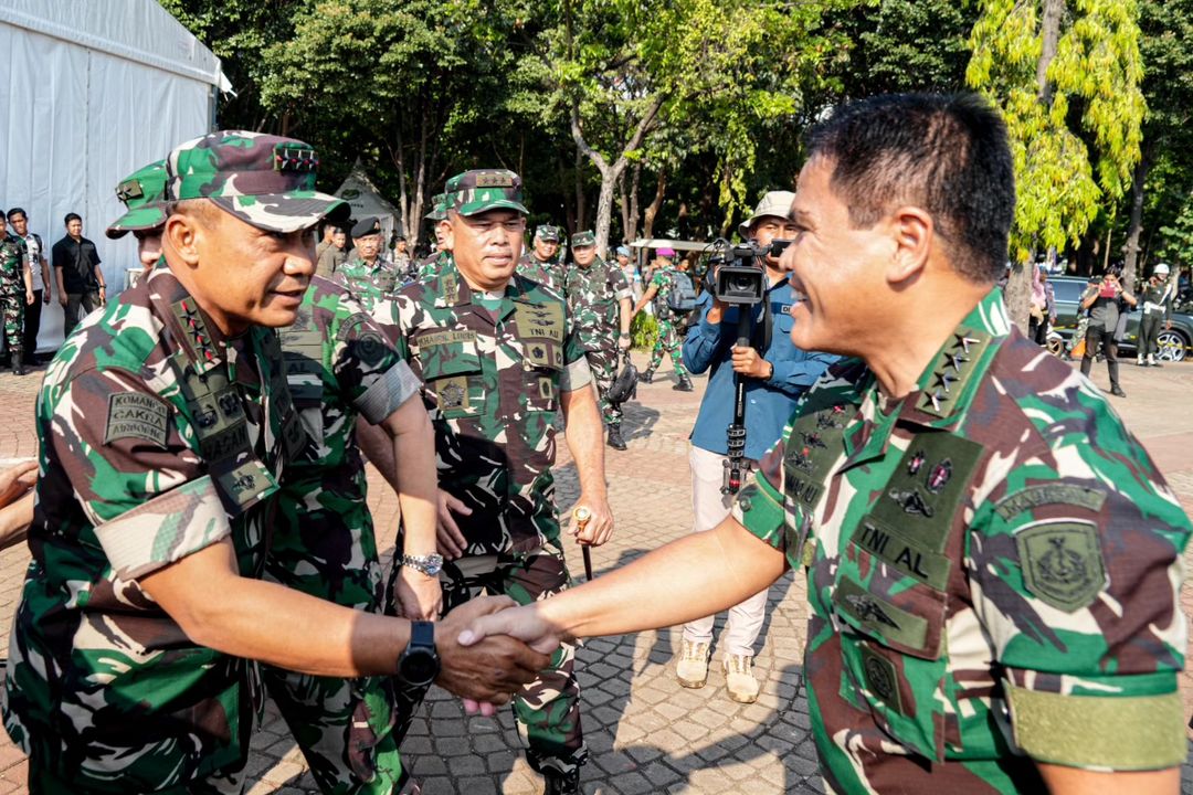 Pasukan gabungan dalam apel tersebut dari TNI Angkatan Darat, TNI Angkatan Laut, TNI Angkatan Udara, dan POLRI serta Pol PP bersiap untuk mengamankan rangkaian acara pelantikan Presiden dan Wakil Presiden RI pada 20 Oktober 2024. (Penkostrad).