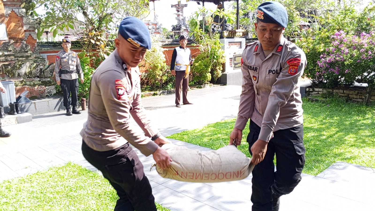 Selain melakukan pembersihan, personel Brimob juga menyerahkan bantuan berupa semen sepuluh karung, pasir satu pikup dan alat kebersihan kepada pengurus Pura Giri Jaya Natha.