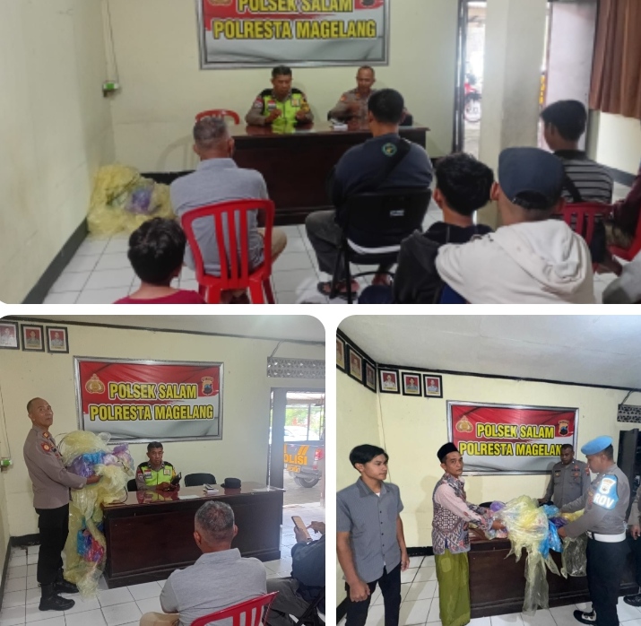 Penyerahan tersebut dilakukan pada Minggu (15/03/2026) sekitar pukul 22.30 WIB di Mapolsek Salam. Balon udara berukuran kecil atau lampion yang diserahkan merupakan hasil kesadaran masyarakat untuk mencegah potensi bahaya yang dapat ditimbulkan dari penerbangan balon udara tanpa pengawasan.