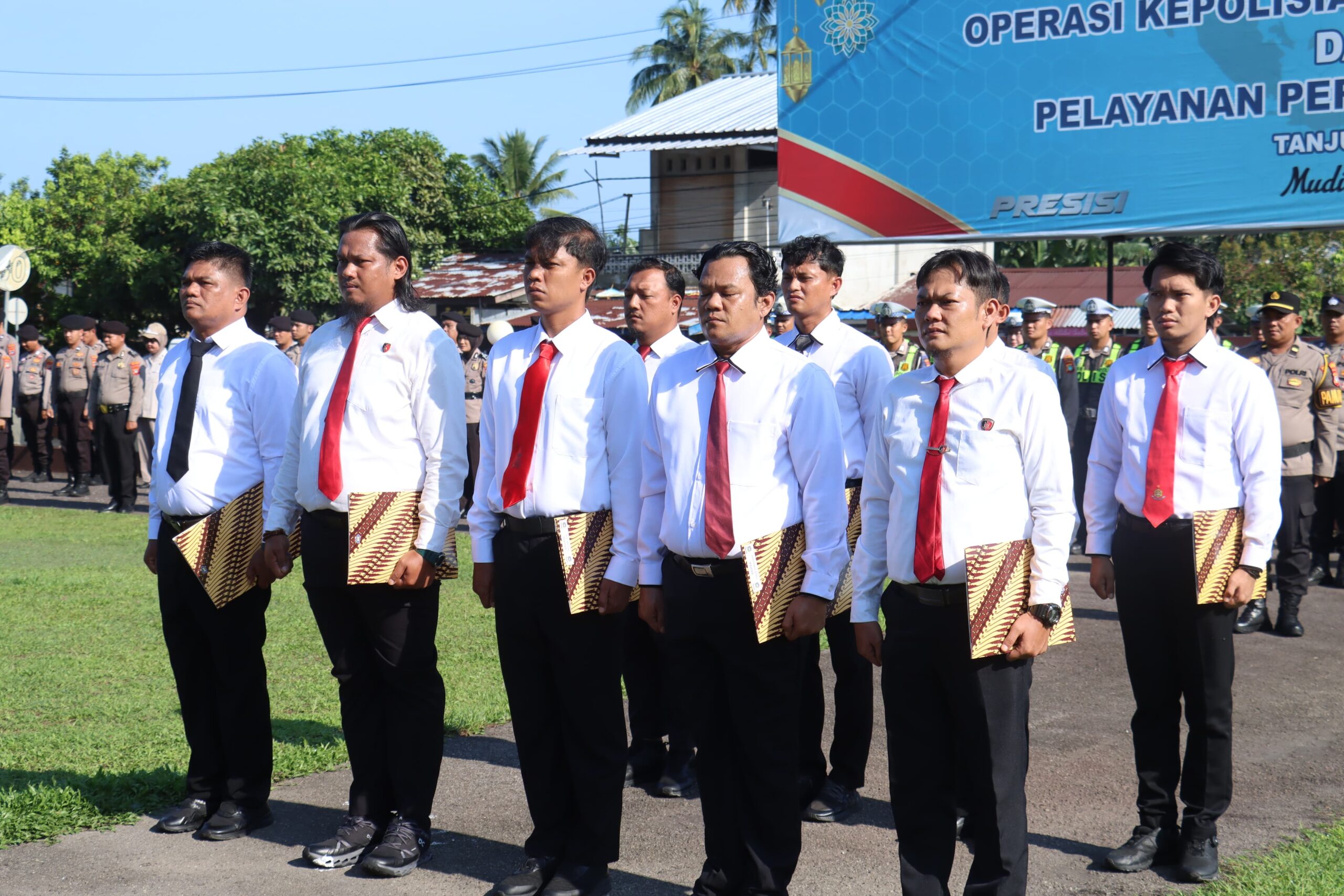 Apel berlangsung khidmat dengan rangkaian kegiatan yang tertib, dimulai dari persiapan pasukan, laporan perwira apel, hingga penyerahan piagam penghargaan kepada personel yang dinilai berprestasi. Penghargaan diberikan kepada anggota dari Sat Intelkam, Sat Reskrim, Sat Narkoba, serta Bag Ren atas dedikasi dan kinerja yang dinilai sangat baik dalam pelaksanaan tugas.