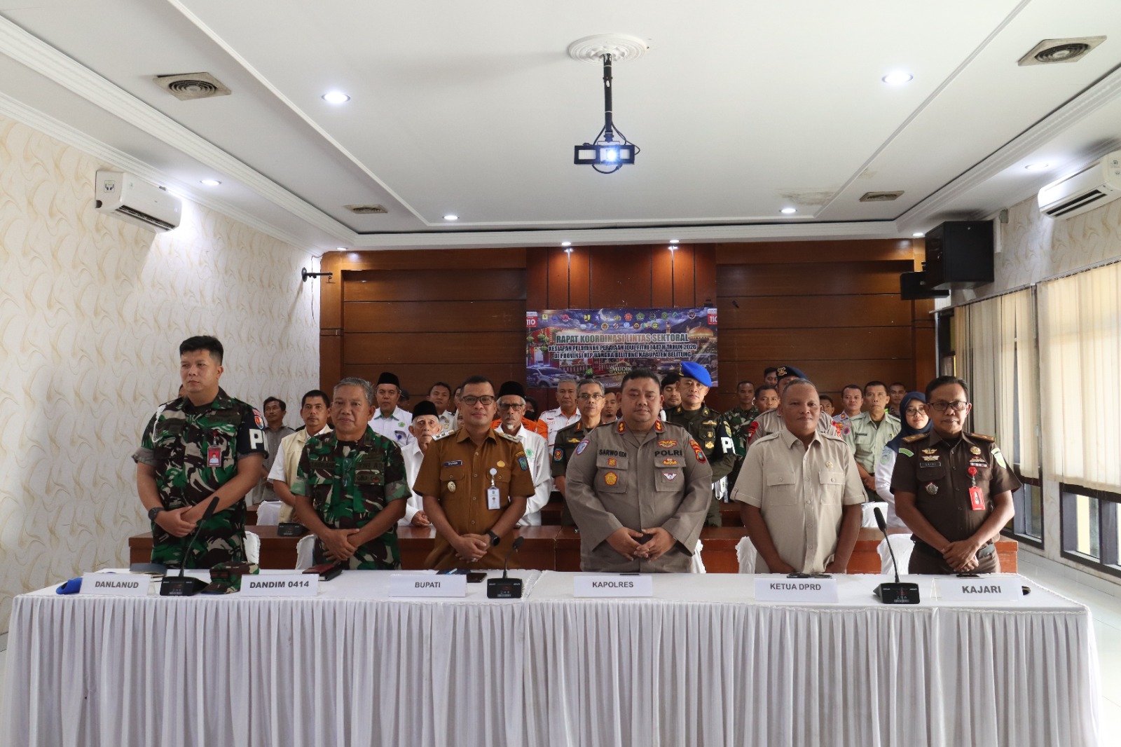 Kegiatan tersebut turut dihadiri Wakil Bupati Belitung Syamsir, S.I.Kom, unsur TNI, instansi pemerintah daerah, serta berbagai stakeholder terkait guna membahas kesiapan pengamanan arus mudik dan perayaan Idul Fitri 1447 Hijriah di Kabupaten Belitung.
