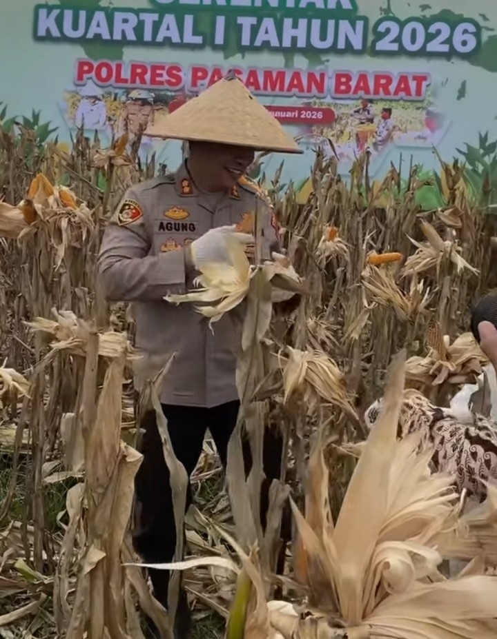 PASAMAN BARAT | Di tengah hamparan ladang jagung yang menguning dan siap panen, Kapolres Pasaman Barat AKBP Agung Tribawanto, S.I.K. tampak berdiri bersama petani. Mengenakan caping dan sarung tangan, ia tak sekadar hadir secara simbolik, tetapi ikut memetik jagung dalam Panen Raya Jagung Serentak Kuartal I Tahun 2026, yang digelar Polres Pasaman Barat sebagai bentuk dukungan nyata terhadap program swasembada pangan nasional.Kegiatan panen raya ini menjadi momentum penting, bukan hanya bagi petani, tetapi juga bagi institusi kepolisian yang menunjukkan peran aktif di sektor strategis ketahanan pangan. Bagi AKBP Agung Tribawanto, ketahanan pangan adalah bagian dari stabilitas nasional yang juga menjadi perhatian Polri.