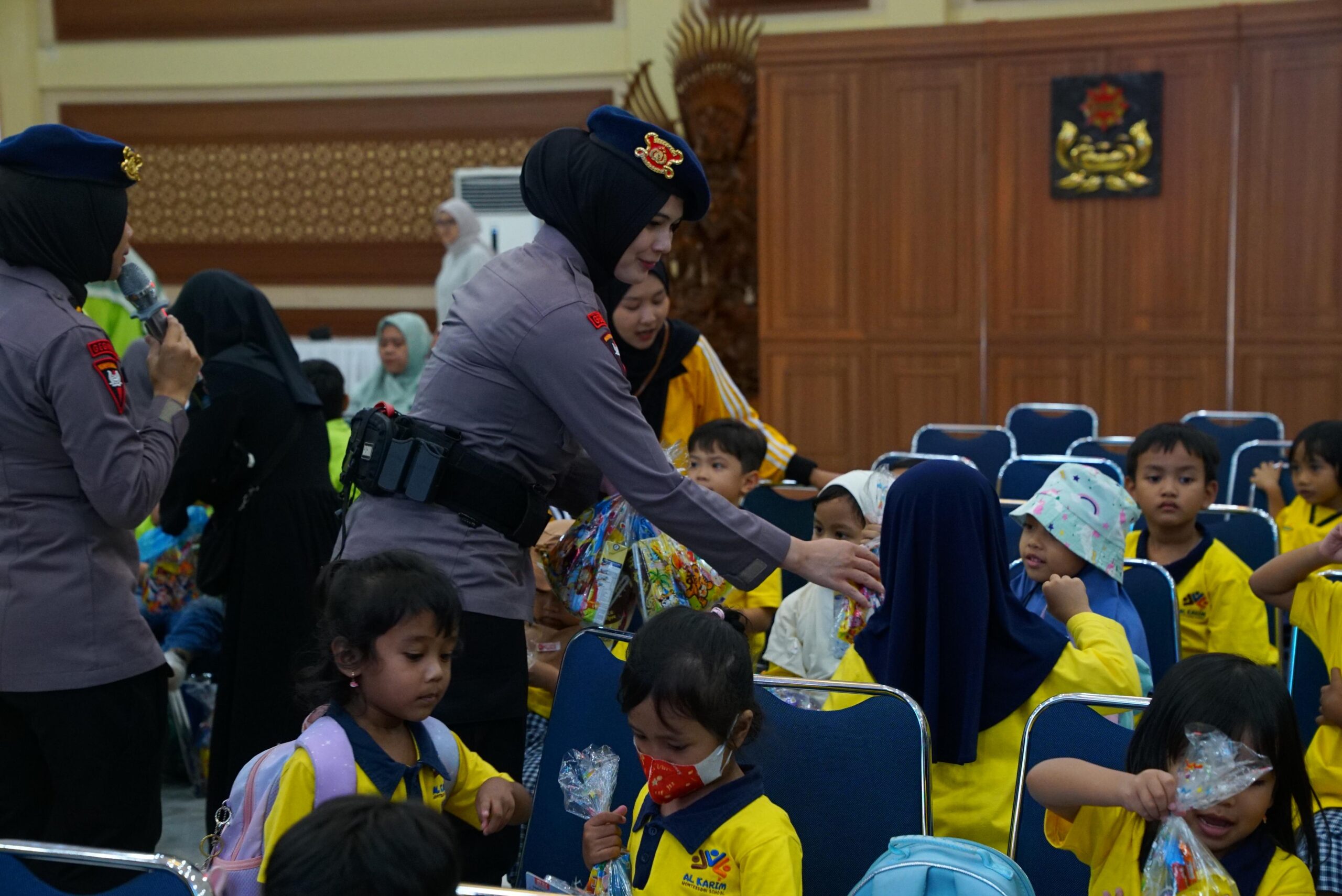 Sebanyak 53 siswa-siswi yang terdiri dari 27 siswa-siswi TK Islam Mutiara Hikmah dan 26 siswa-siswi TK Al-Karim mengunjungi Kesatrian Amji Attak Mako Korbrimob Polri, Kelapadua, Cimanggis, Kota Depok.