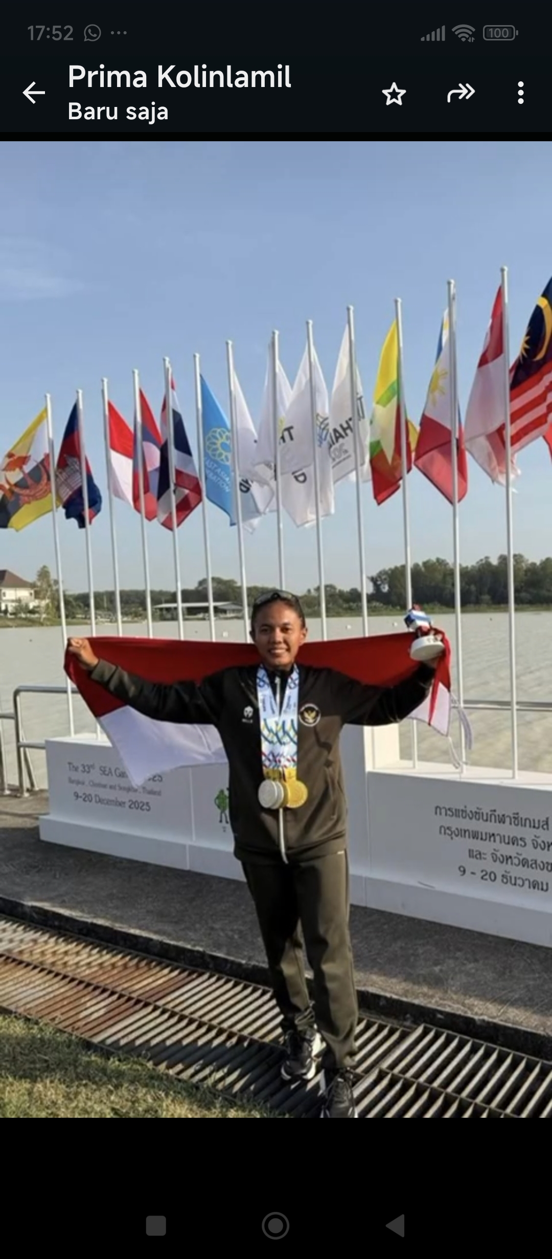 Ny. Rizka Absori mencatatkan prestasi membanggakan dengan meraih medali emas pada cabang olahraga Dayung Perahu Naga di ajang SEA Games 2025 di Thailand. Pencapaian tersebut menjadi bukti nyata dedikasi dan konsistensinya dalam menekuni dunia olahraga.