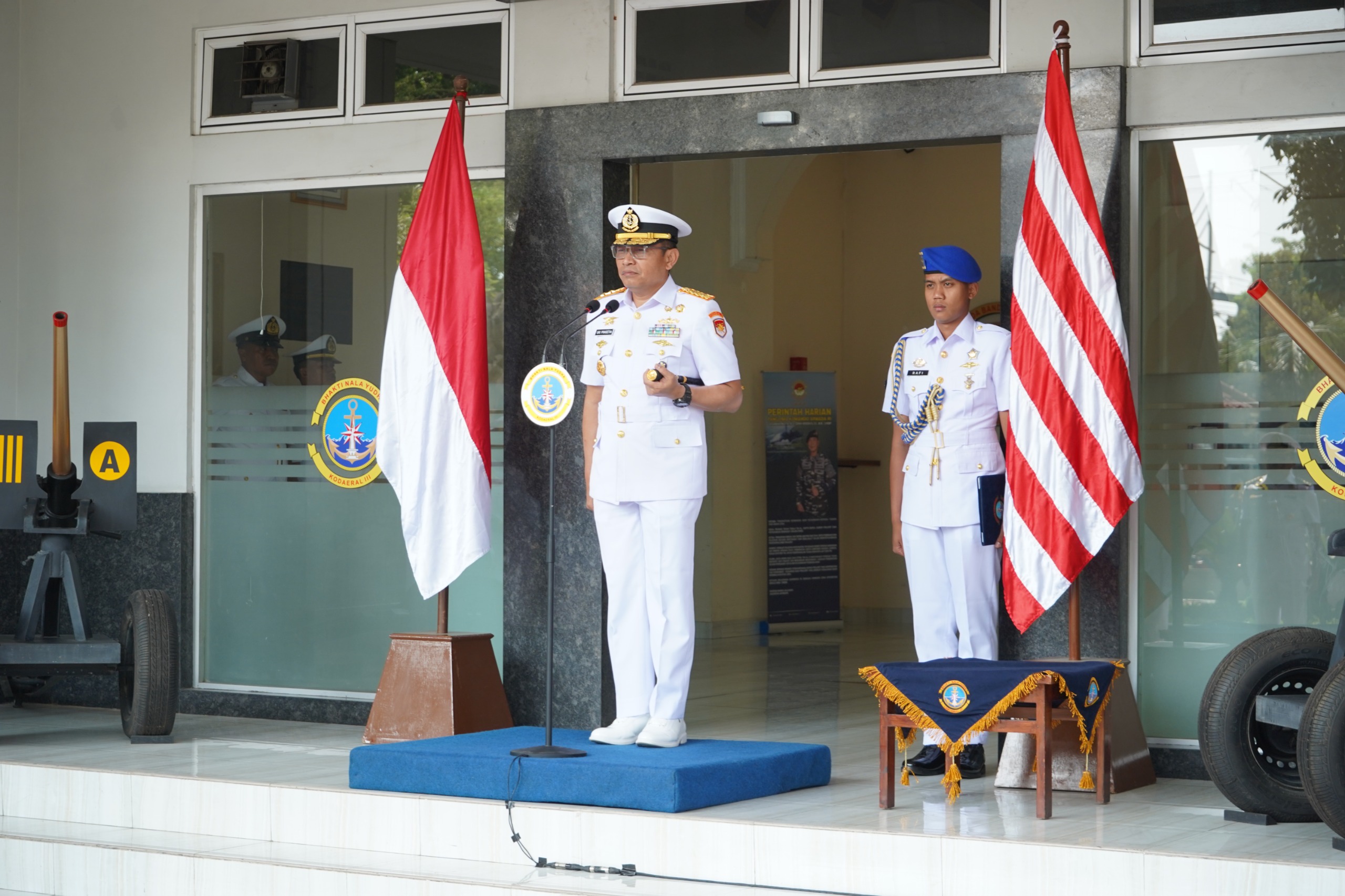 Komandan Komando Daerah Angkatan Laut (Dankodaeral) III Laksamana Muda TNI Uki Prasetia, S.T., M.M. memimpin upacara serah terima jabatan (Sertijab) dan pengkuhan jabatan, yang berlangsung di selasar Makodearal III Jakarta, Jl. Gunung Sahari No. 2 Ancol, Jakarta Utara, Senin (8/9).