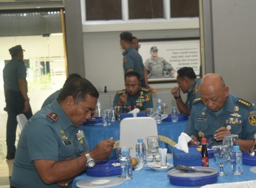 Komandan Seskoal Laksamana Muda TNI Fauzi, S.E., M.M., M.Tr.Opsla., M.Han. yang didampingi Wakil Komandan dan Pejabat Utama Seskoal meninjau dan melaksanakan uji coba menu makan bergizi gratis. Kegiatan ini dilaksanakan di ruang makan John Lie, Seskoal.