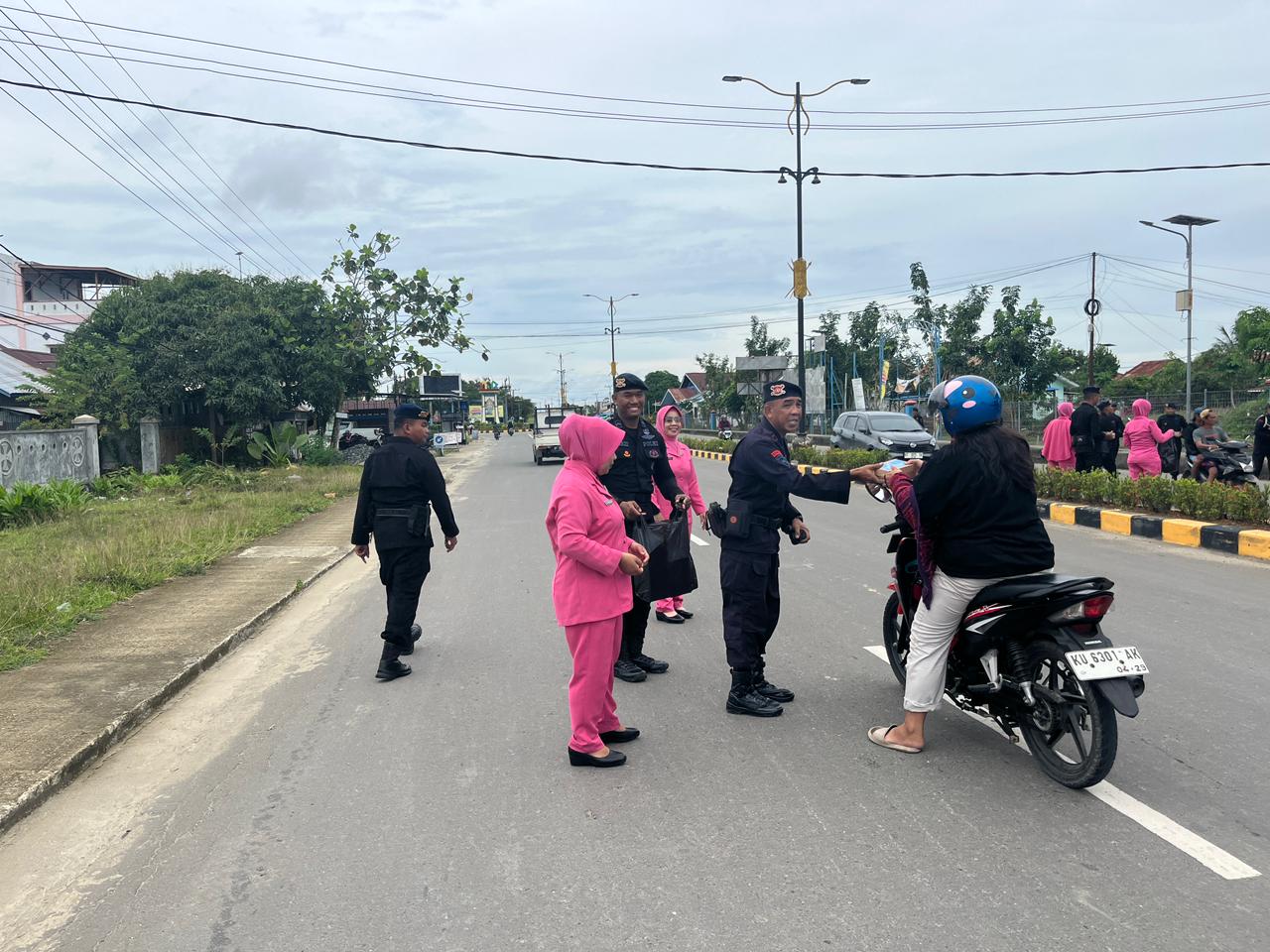 Malinau – Dalam rangka menyemarakkan bulan suci Ramadan 1447 H, sebanyak 15 personel Kompi 4 Batalyon A Pelopor Satuan Brimob Polda Kalimantan Utara bersama Bhayangkari melaksanakan kegiatan berbagi takjil kepada masyarakat. Kegiatan yang dipimpin langsung oleh Ipda Korniawan Bayu Suwignyo tersebut dilaksanakan pada Sabtu (7/3/2026) di depan Bandara RA Bessing Malinau, Jalan Raja Pandhita, Malinau Kota, Kecamatan Malinau Kota, Kabupaten Malinau.
